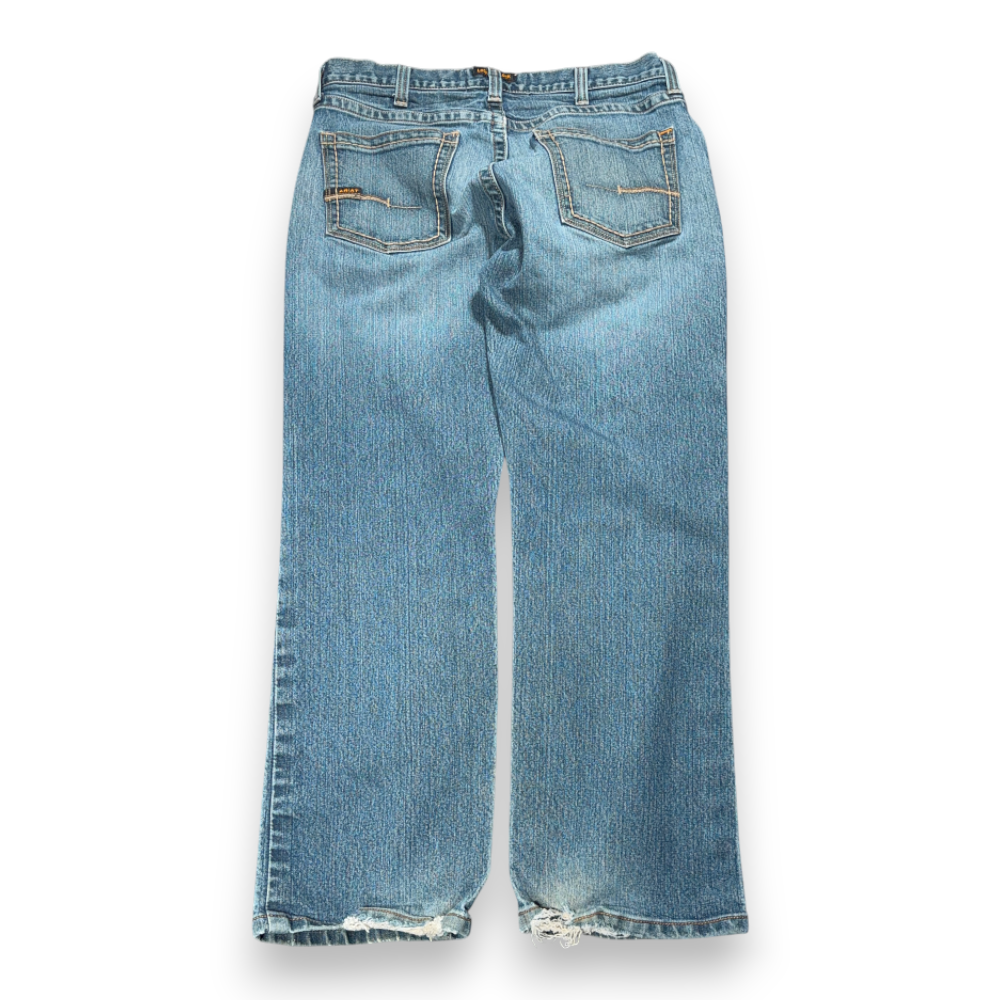 Ariat Jeans Mens 34×30 Blue Rebar M5 Slim Straight Distressed Medium Wash Denim