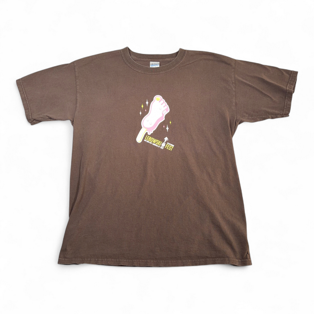 Big Lebowski Shirt Adult LARGE Brown Fest Foot Popsicle Toe Bowling Movie Y2K