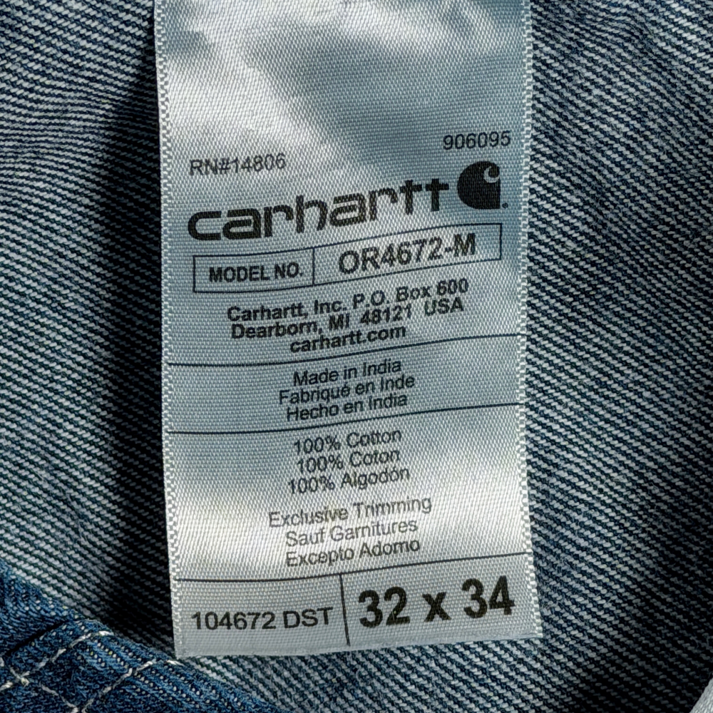 Carhartt Overalls Mens 32×34 Blue Bib Cotton Dark Wash Denim Workwear OR4672