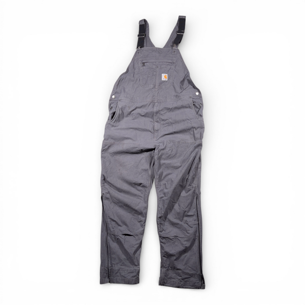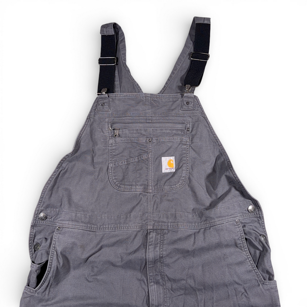 Carhartt Overalls Mens 44×32 Gray Canvas Bib Relaxed Rugged Flex Workwear OR2987