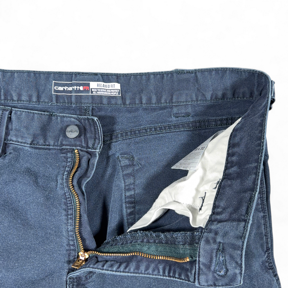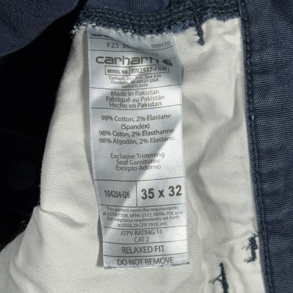 โข Carhartt tag “RELAXED FIT BUILT TO SERVE AND PROTECT ALL HARDWORKING PEOPLE”
