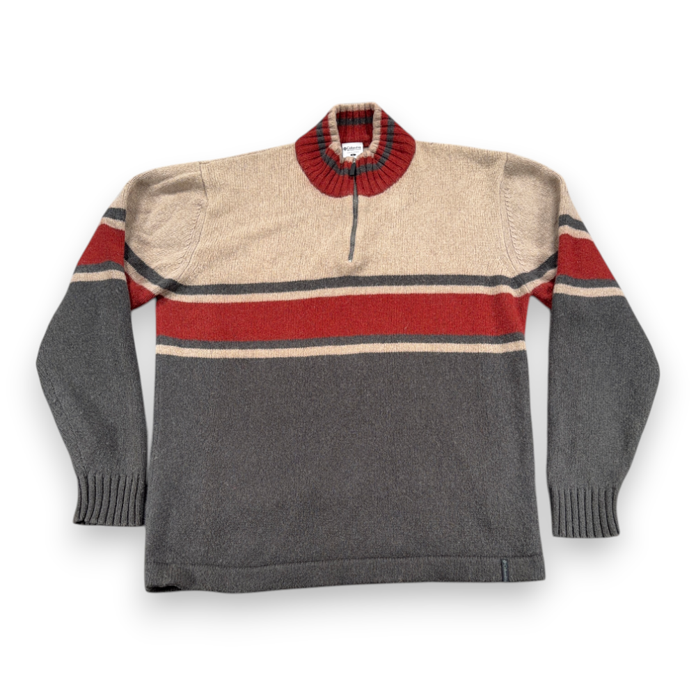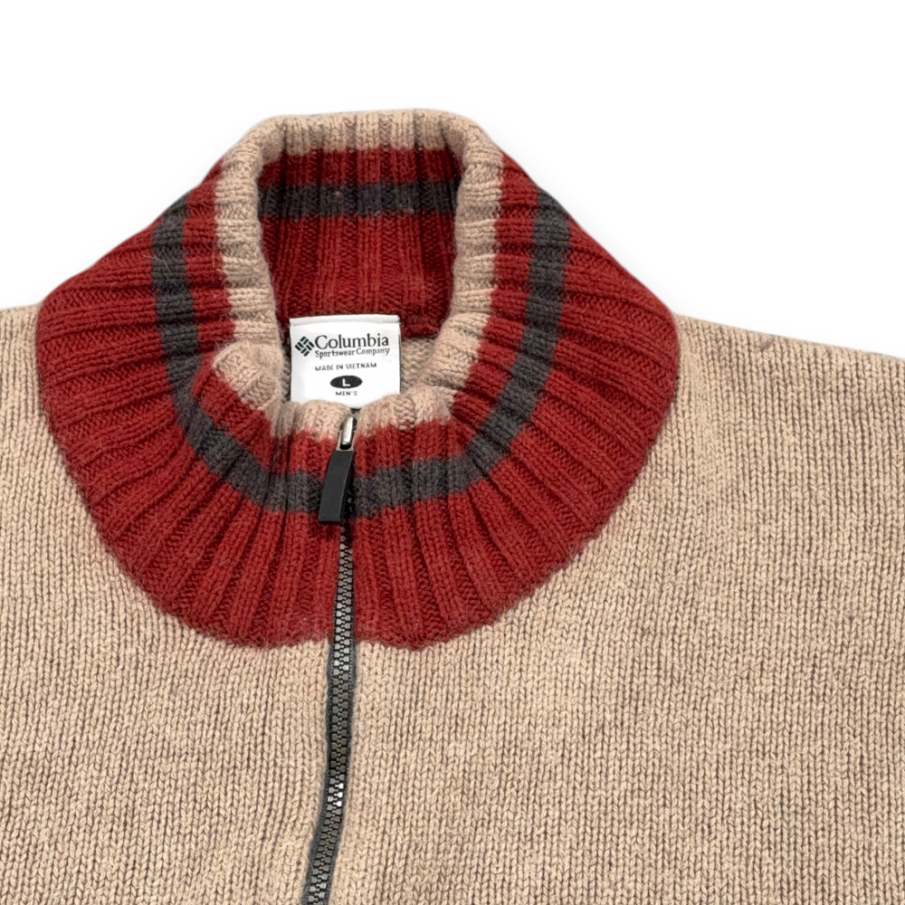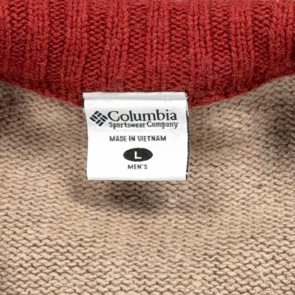 Columbia Sweater Adult LARGE Gray Brown Burnt Orange Wool Blend Quarter Zip