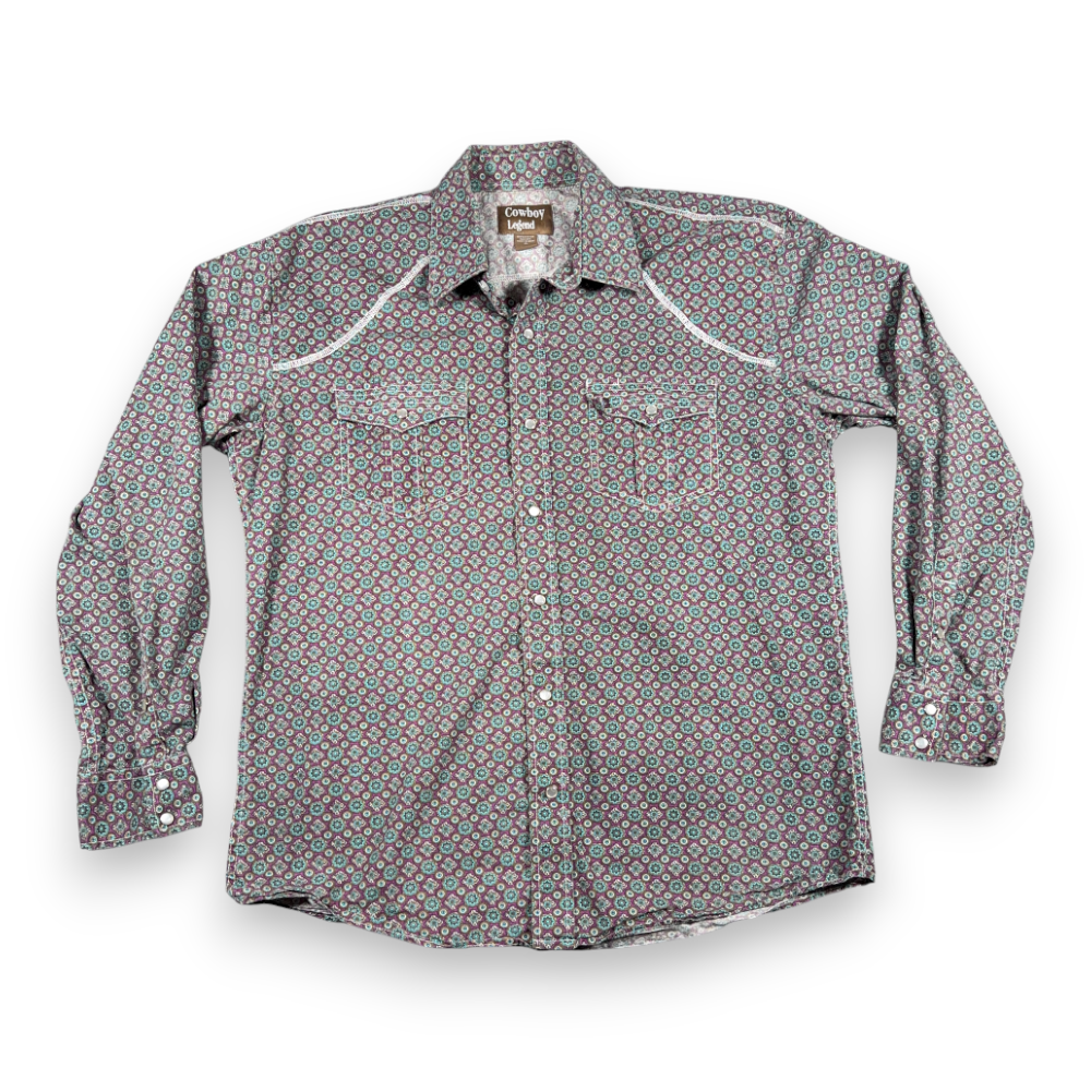 Cowboy Legend Western Shirt Adult EXTRA LARGE Purple Teal Medallion Cowboy