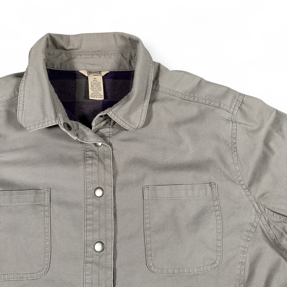 Duluth Trading Jacket Womens EXTRA LARGE Gray Flex Firehose Plaid Lined Workwear
