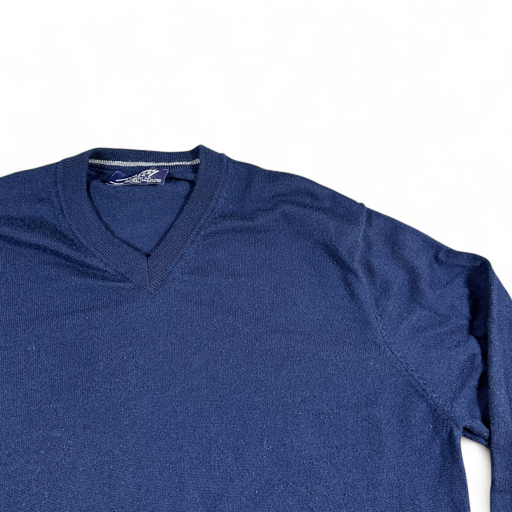 Jeremy Argyle Sweater Adult LARGE Blue NYC Merino Wool Knit V Neck Pullover Y2K