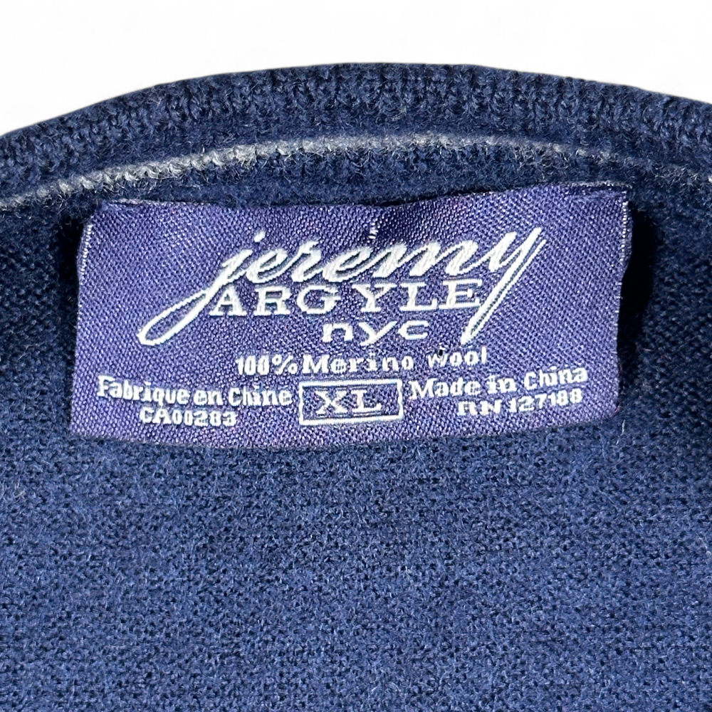 โข Jeremy Argyle tag says “Jeremy ARGYLE nyc” and “100% Merino Wool”