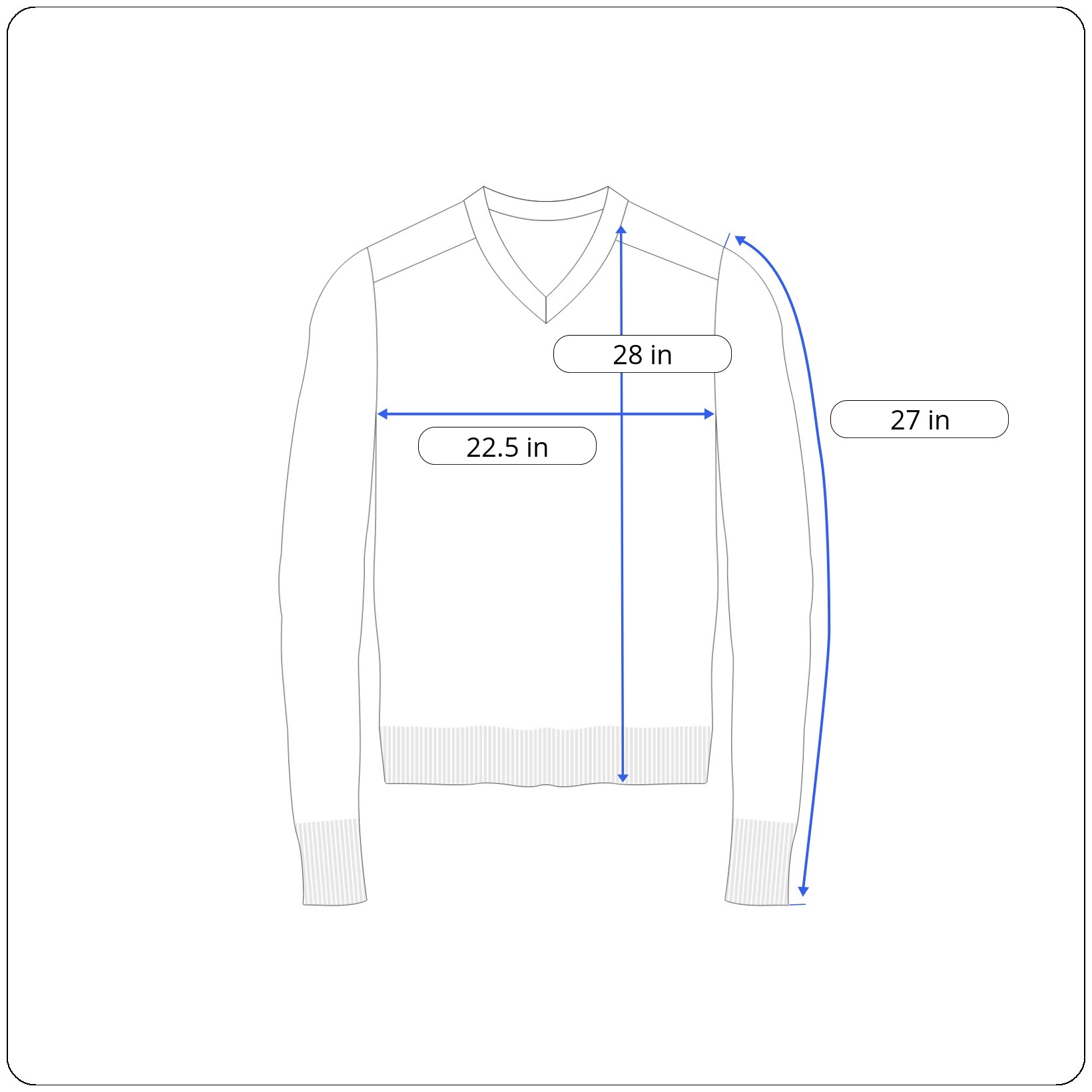 Sleeves: 27 inches (shoulder seam to cuff end)