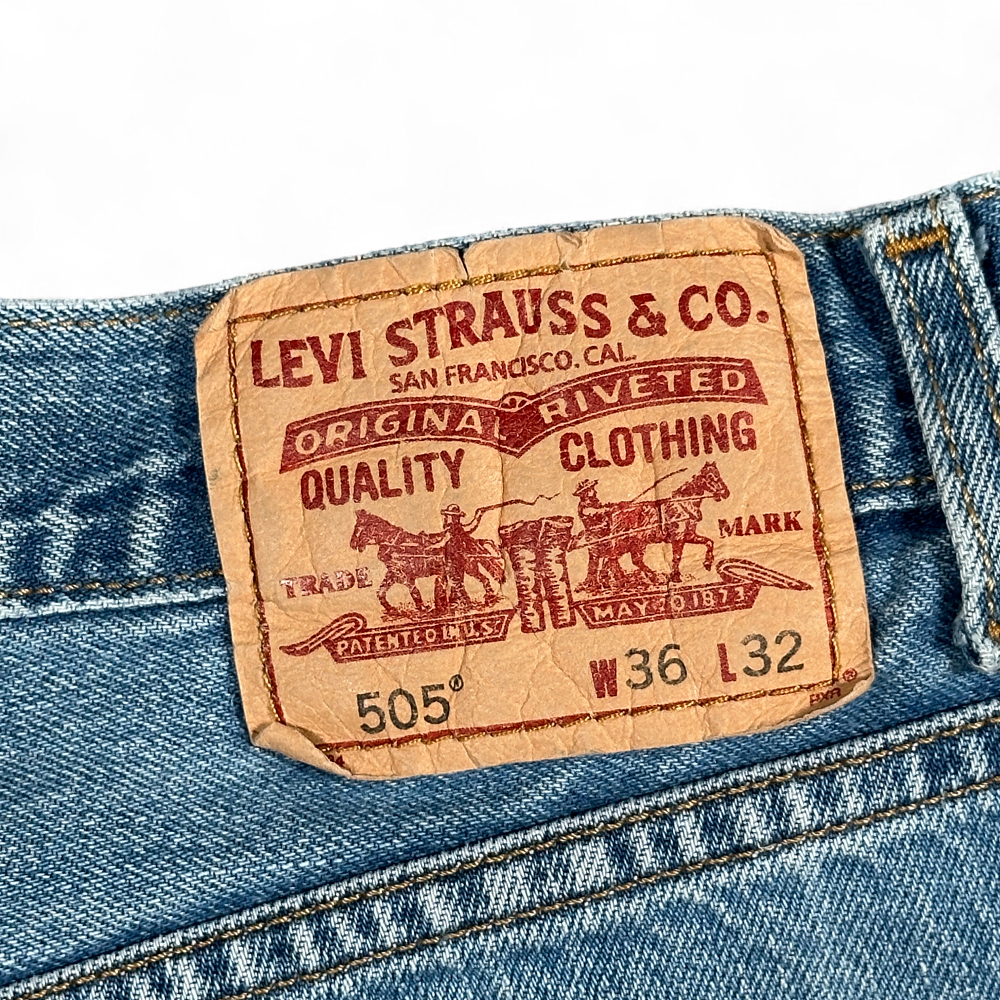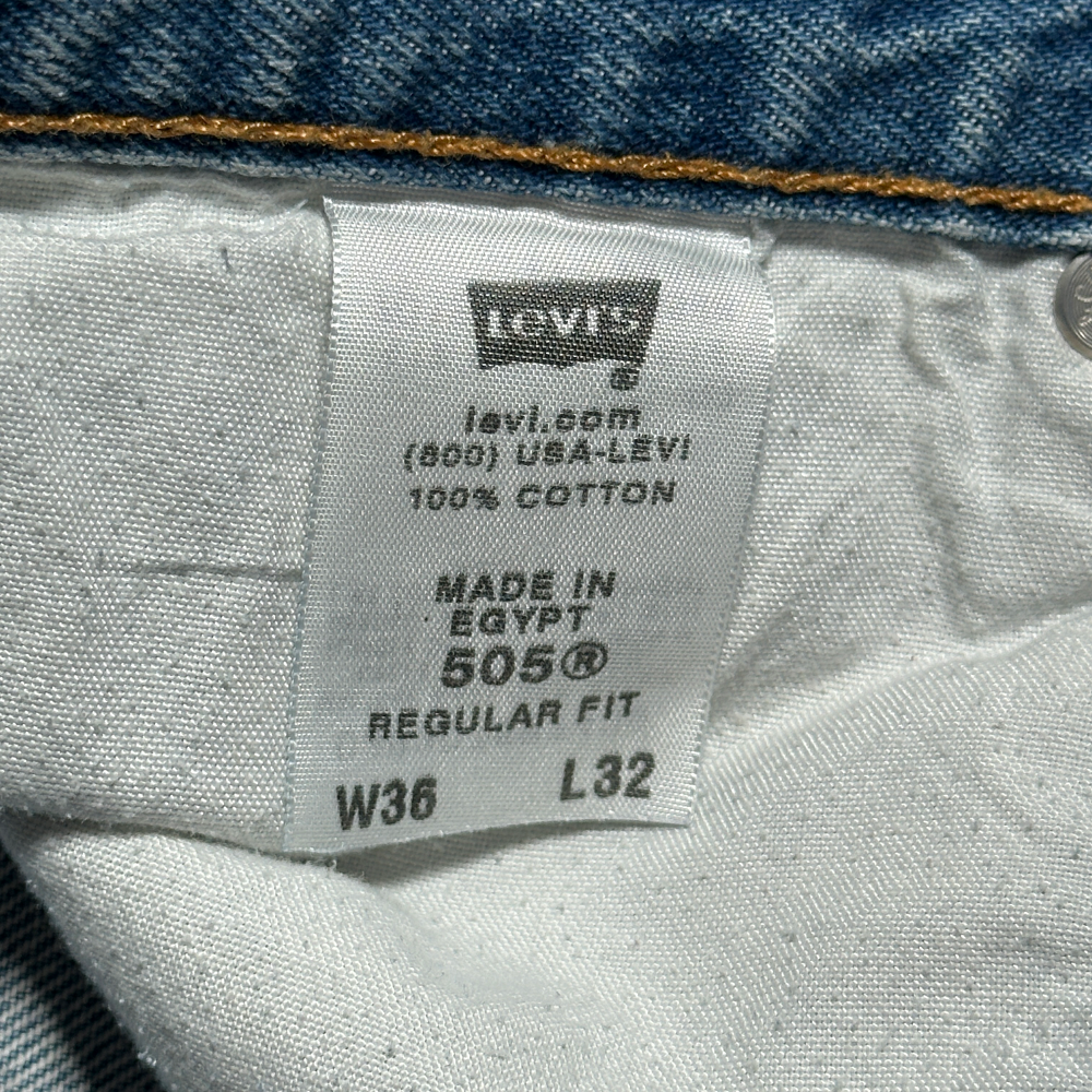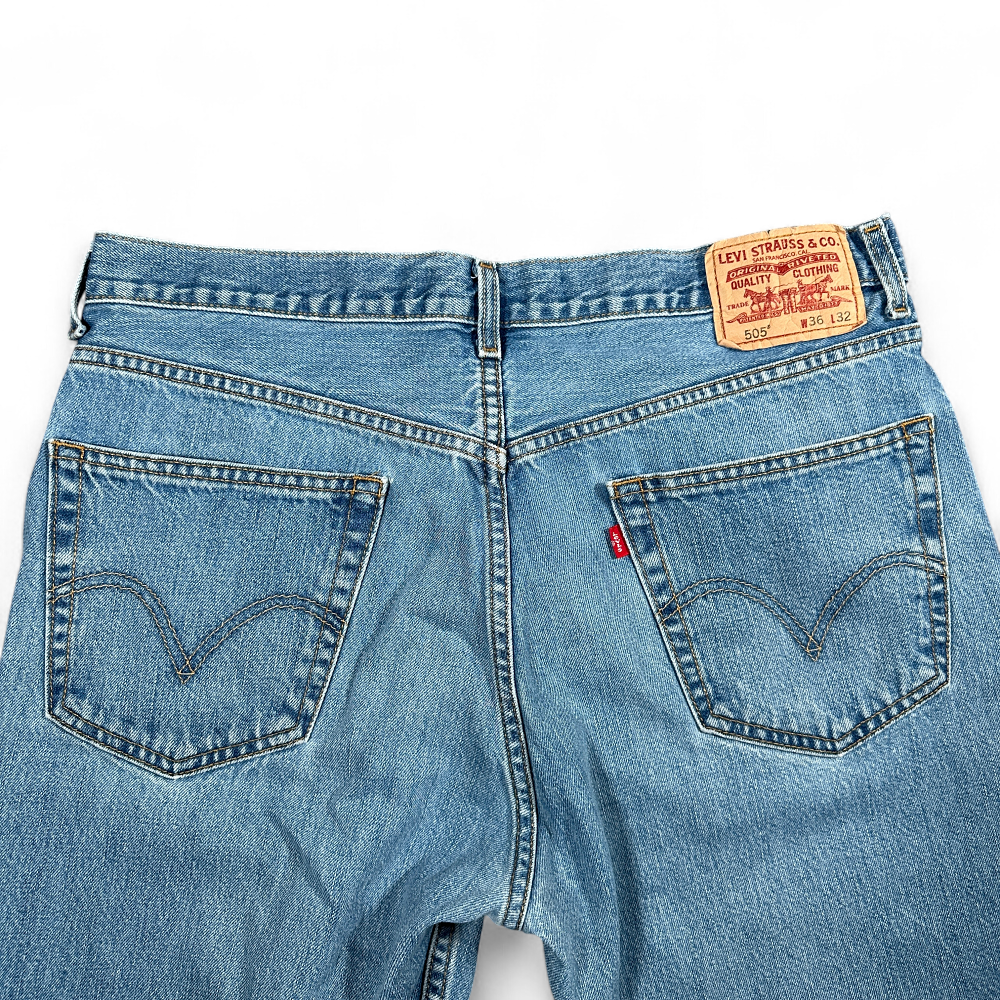 Levis 505 Jeans Mens 36×32 Blue Regular Fit Straight Leg Light Wash Denim Y2K