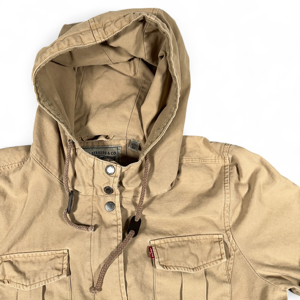 Levis Jacket Womens EXTRA LARGE Brown Hooded Utility Military Field Cotton Khaki