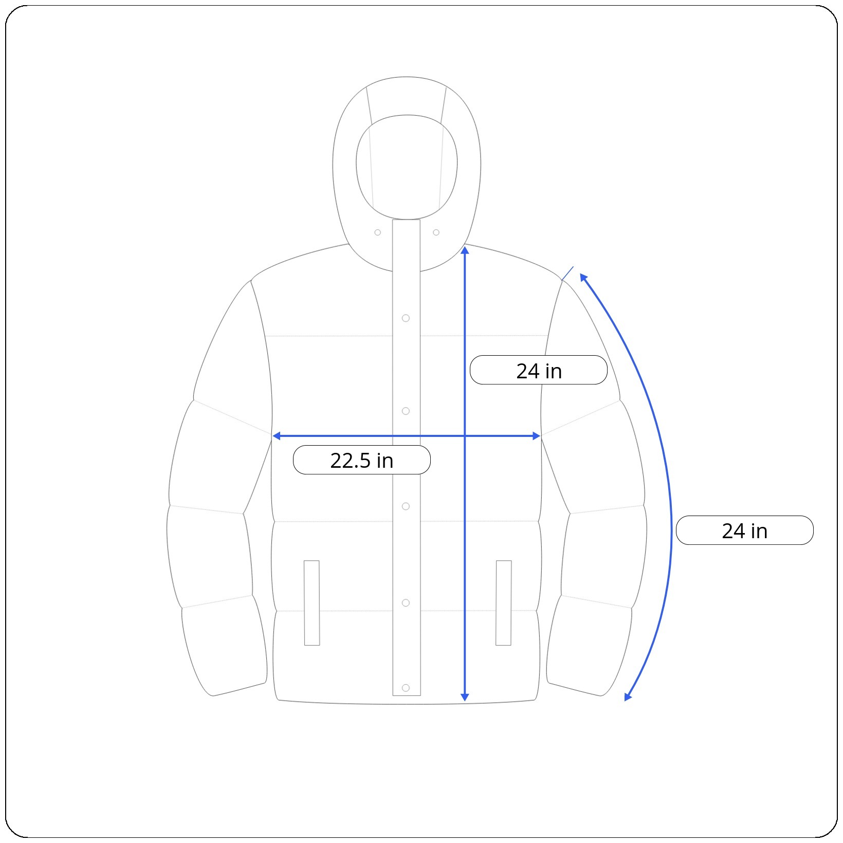 Sleeves: 24 inches (shoulder seam to cuff end)