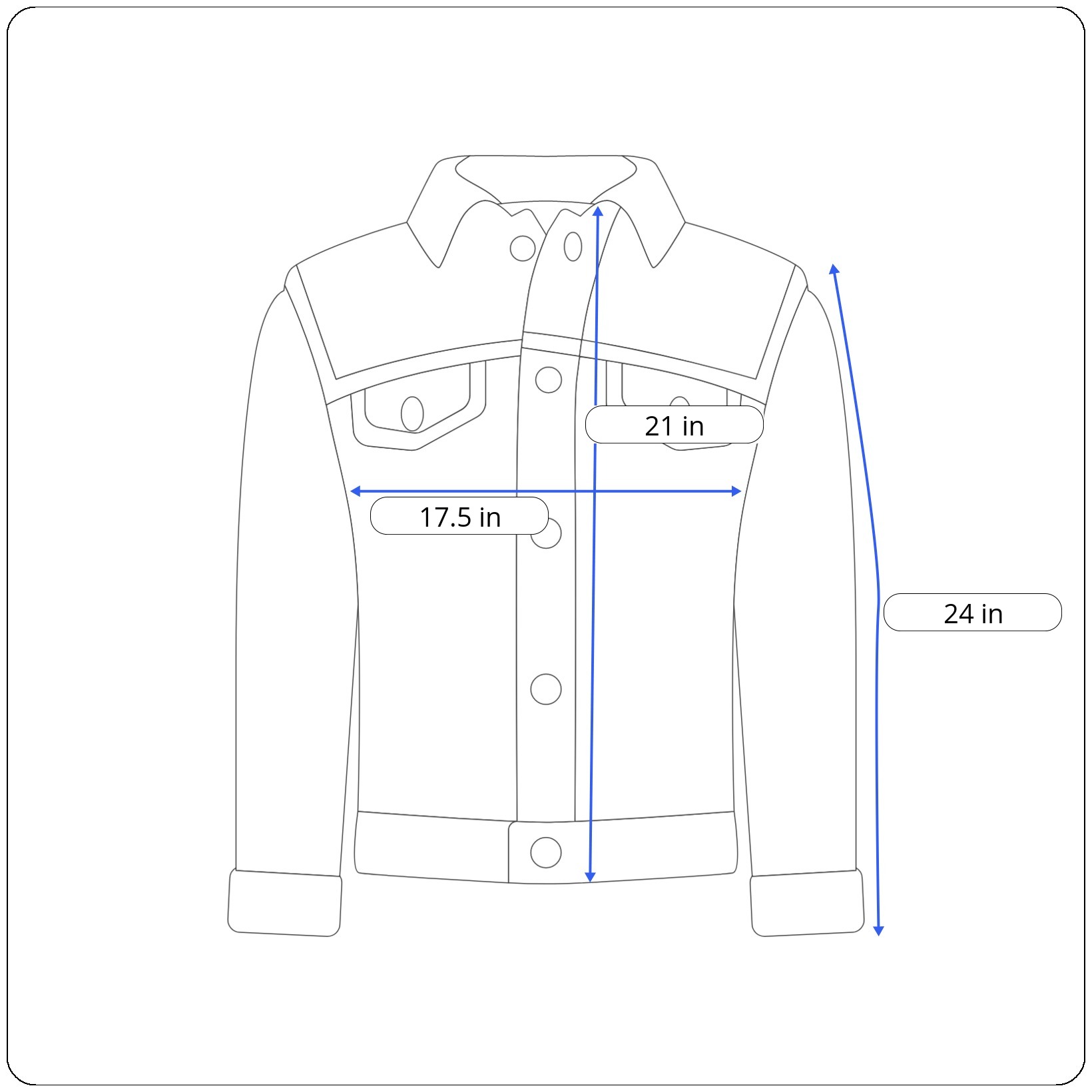 Sleeves: 24 inches (shoulder seam to cuff end)