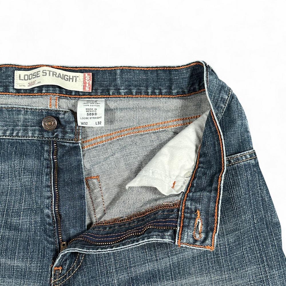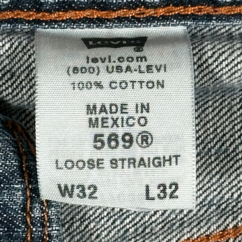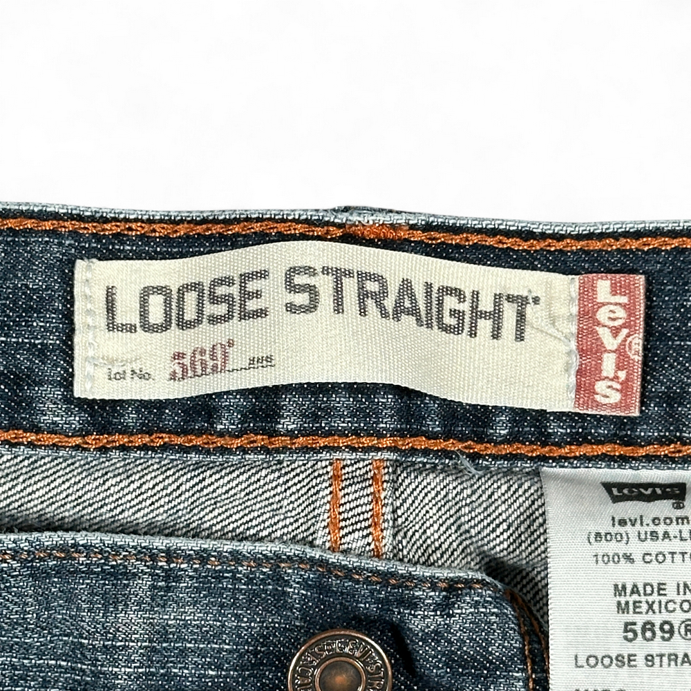 Levis Jeans Mens 32×32 Blue Loose Straight Dark Wash 569 Baggy Skater Faded Y2K