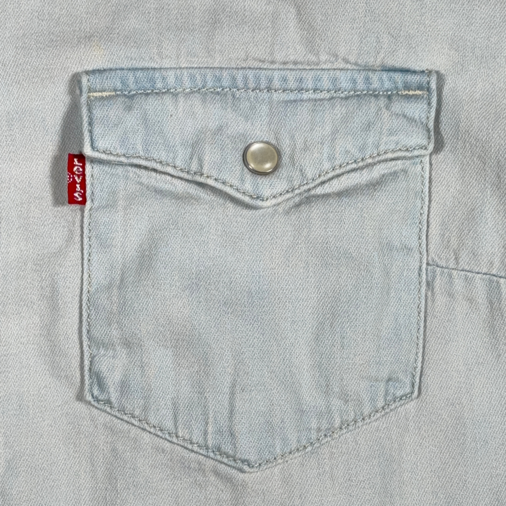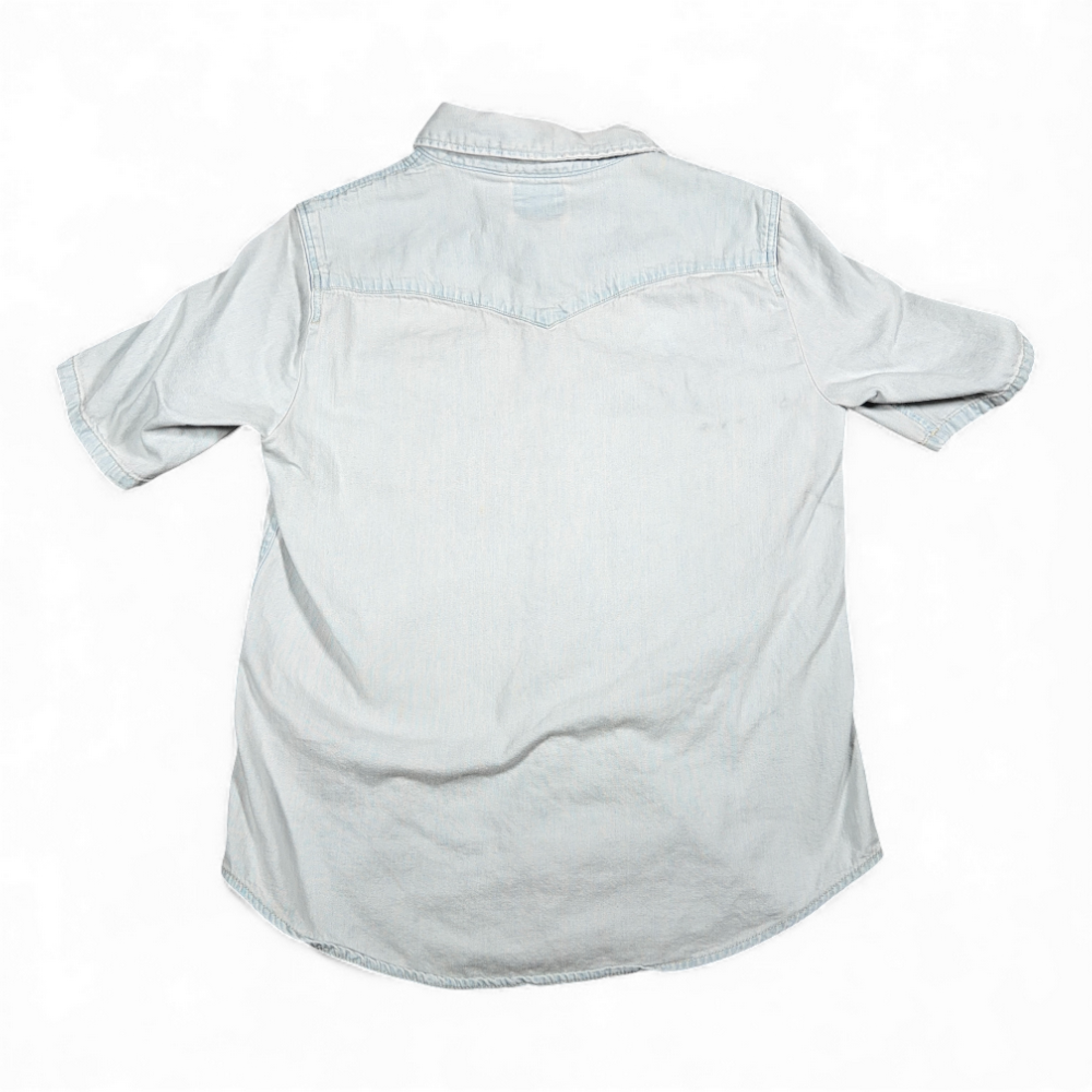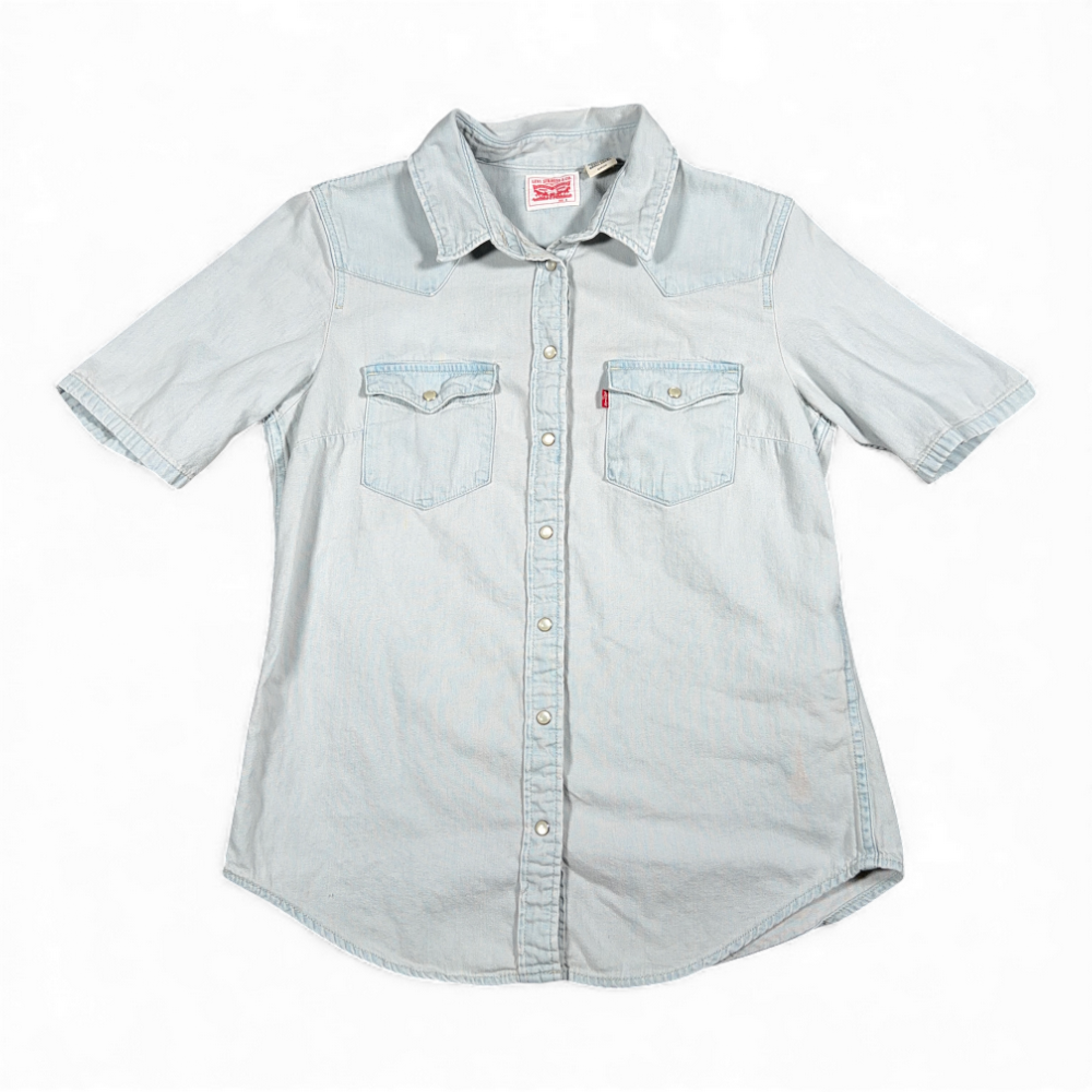 Levis Western Shirt Womens SMALL Blue Denim Light Wash Pearl Snaps Cowgirl