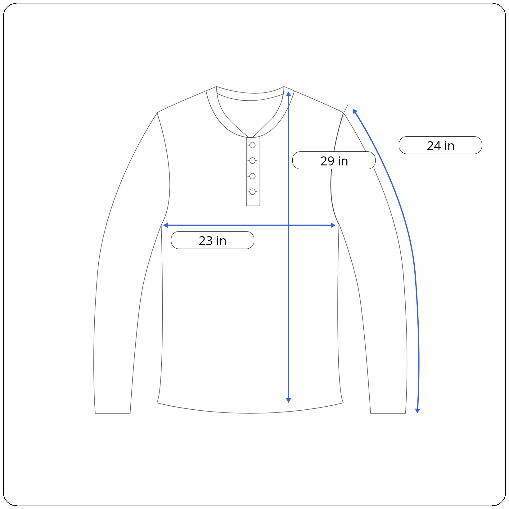 Sleeves: 24 inches (shoulder seam to cuff end)