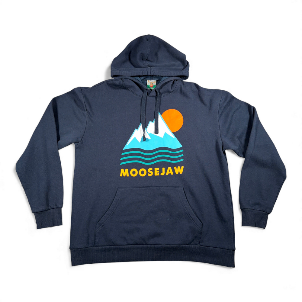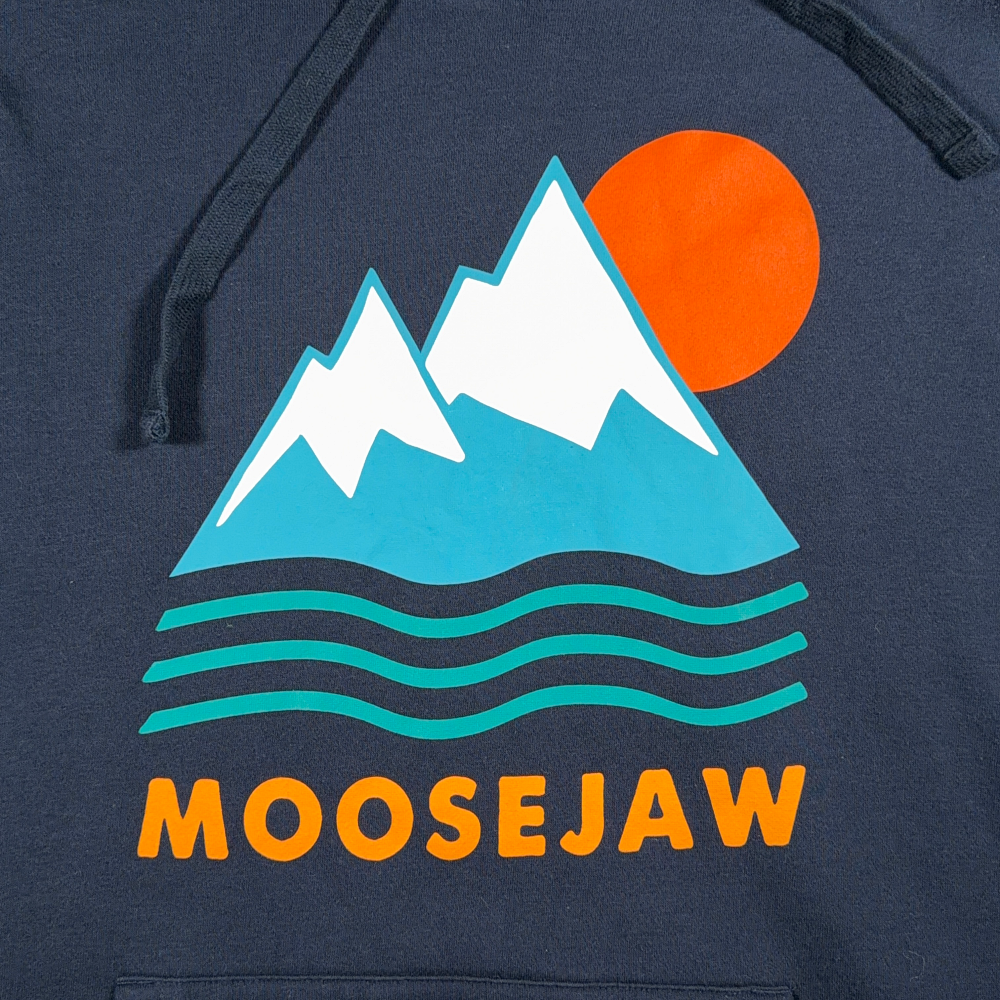 Moosejaw Sweater Adult EXTRA LARGE Blue Mountain Graphic Pullover Hoodie Outdoor
