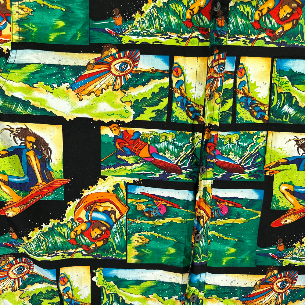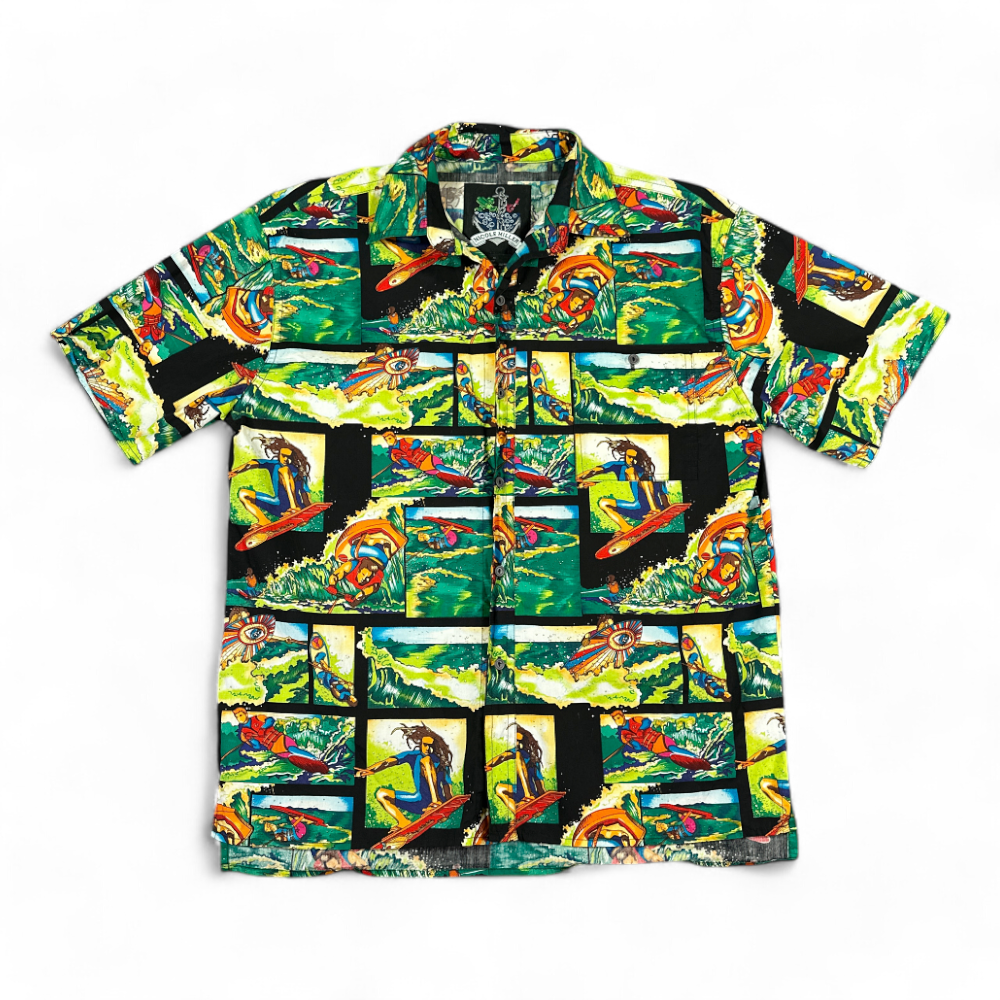 Nicole Miller Hawaiian Shirt Green Black Surfing Water Sports Womens EXTRA LARGE