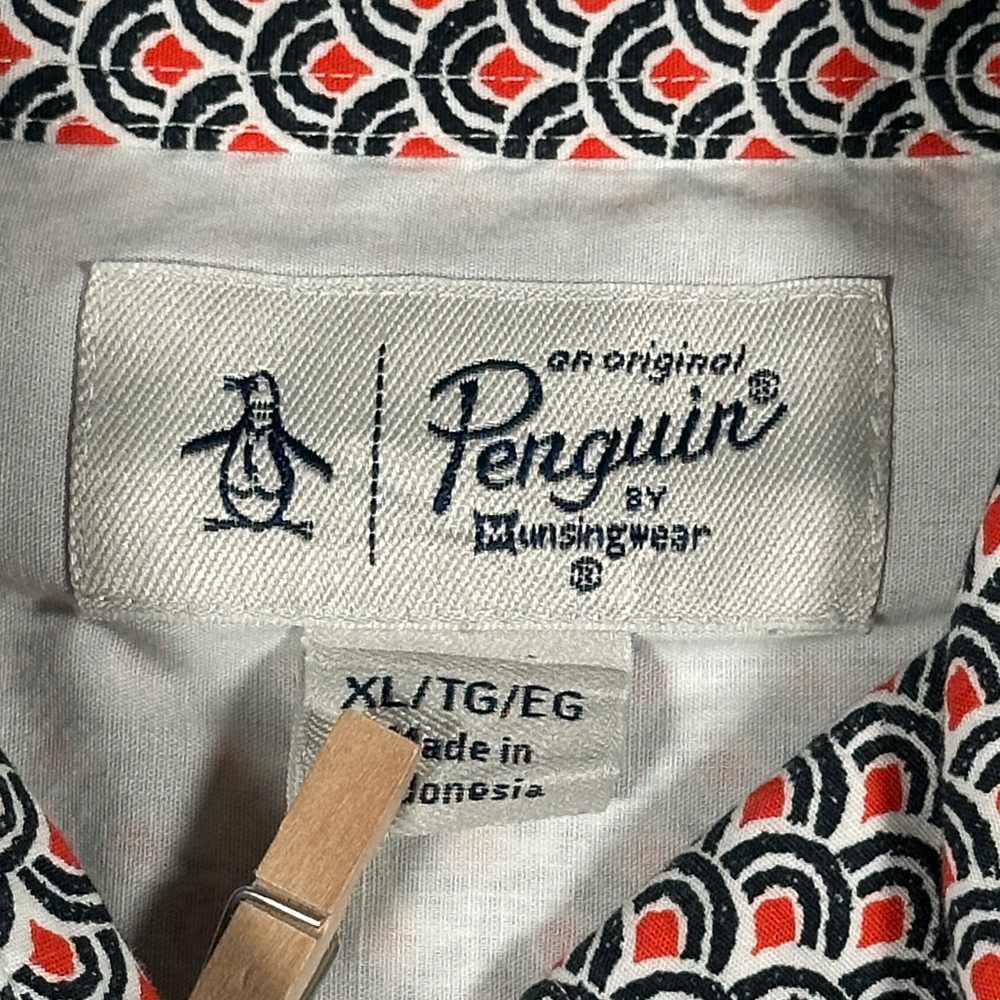 Penguin Munsingwear Shirt Adult EXTRA LARGE Red Blue Scalloped Geometric Slim