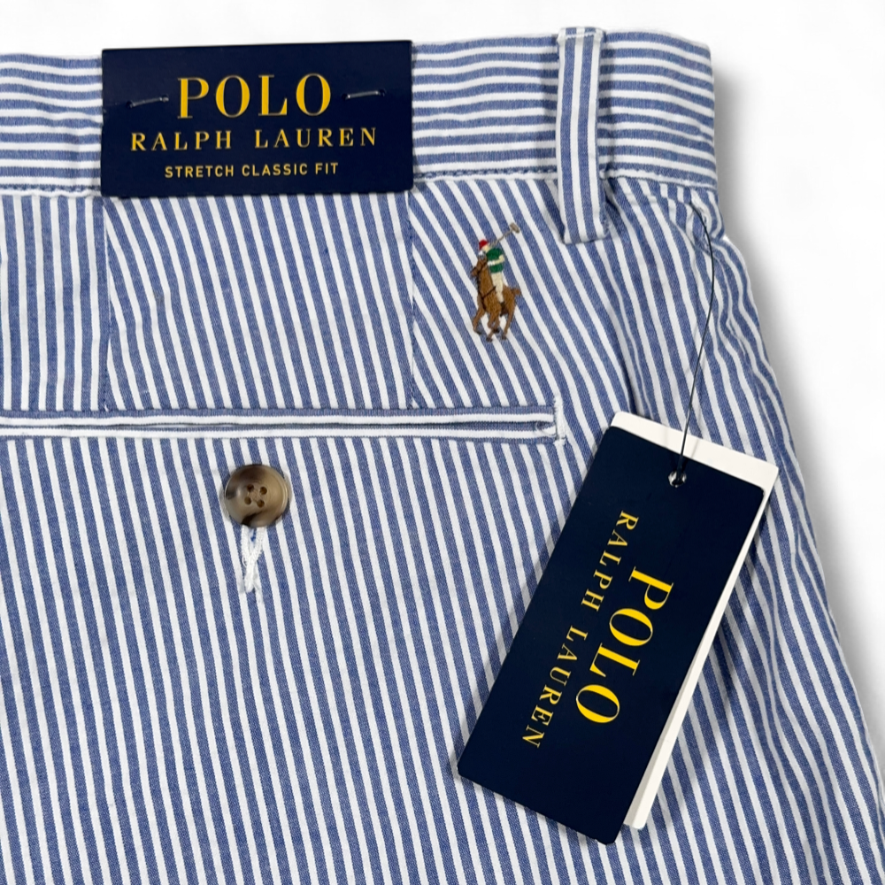 Polo Ralph Lauren Shorts Mens 36 Blue Striped Seersucker Stretch Classic Preppy