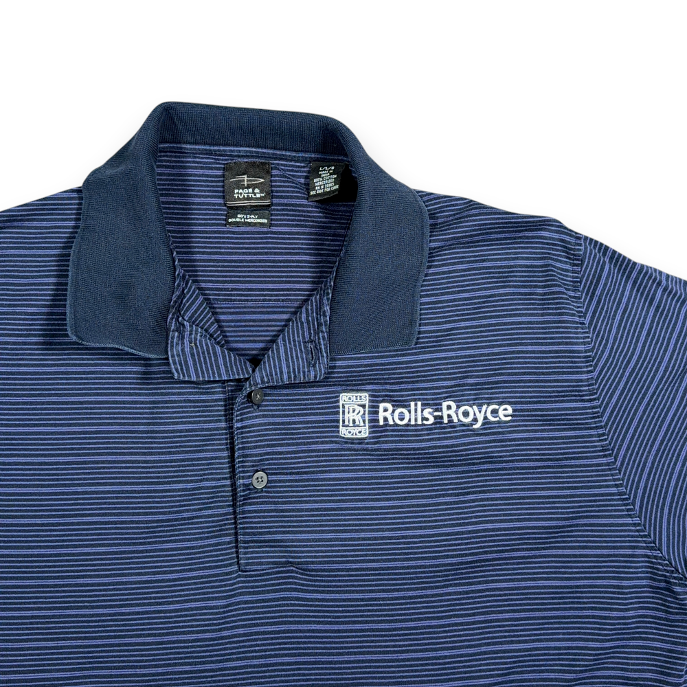 Rolls Royce Polo Shirt Adult LARGE Blue Striped Cotton Corporate Logo Workwear