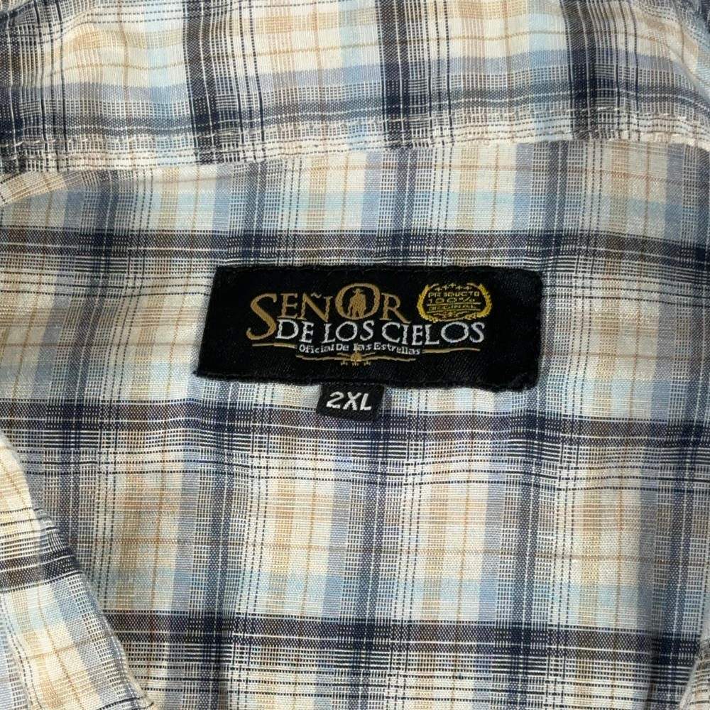 Senor De Los Cielos Western Shirt White Blue Plaid Adult LARGE
