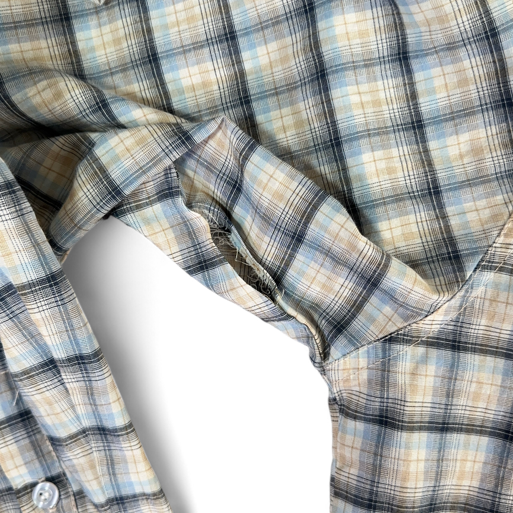 โ€ข All over plaid pattern.