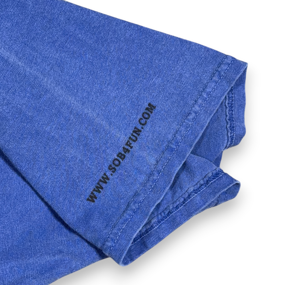 – Small left chest SOB graphic with oyster holding a beer mug, palm trees, “Smokin Oyster Brewery” & “Ft. Myers Beach, Florida”
