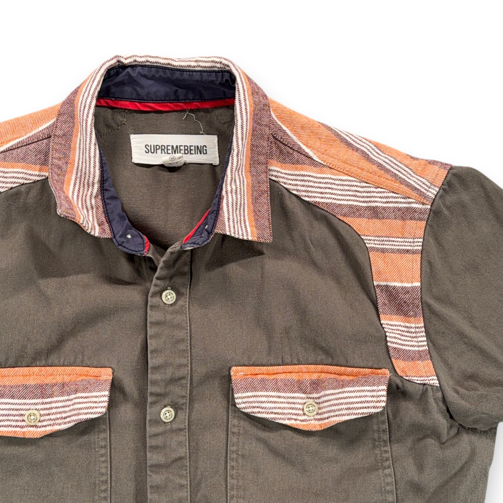 Supremebeing Shirt Adult MEDIUM Green Southwest Orange Trim Western Military