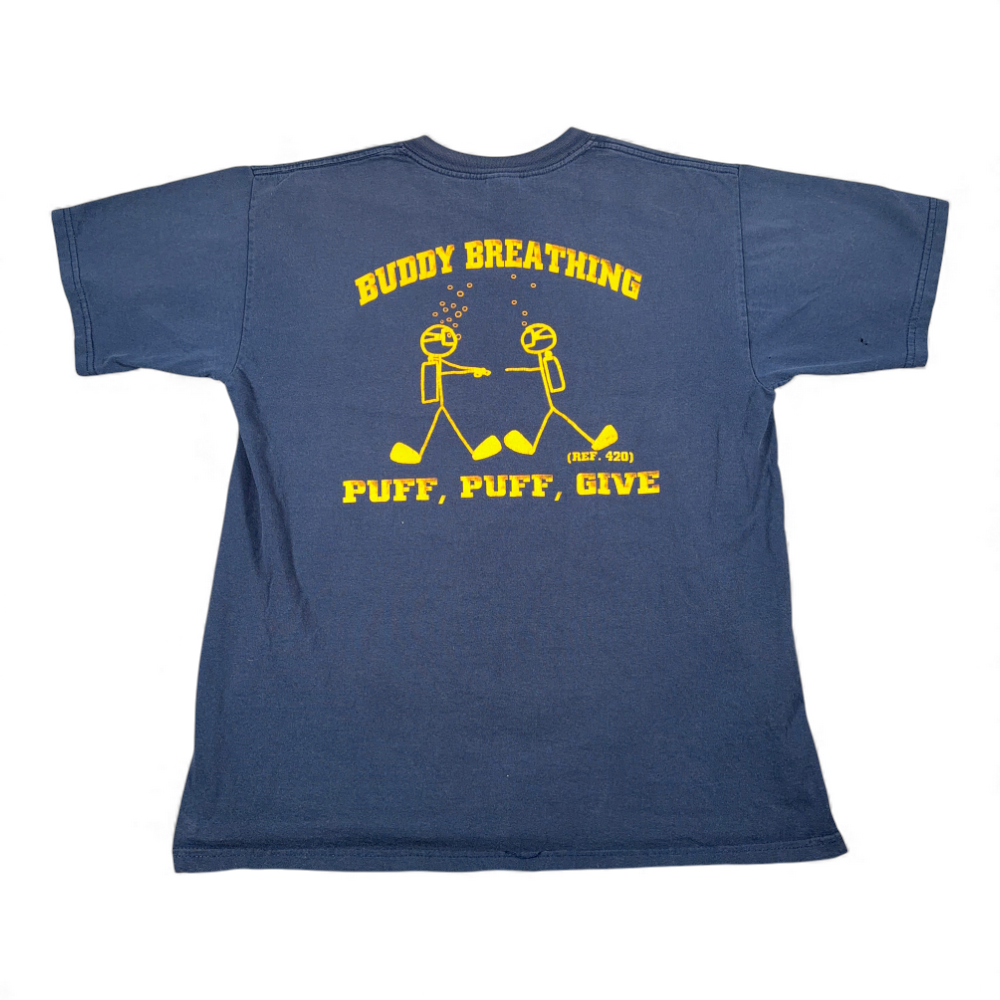 Vintage 420 Shirt Adult LARGE Blue Buddy Breathing Puff Give Funny Y2K