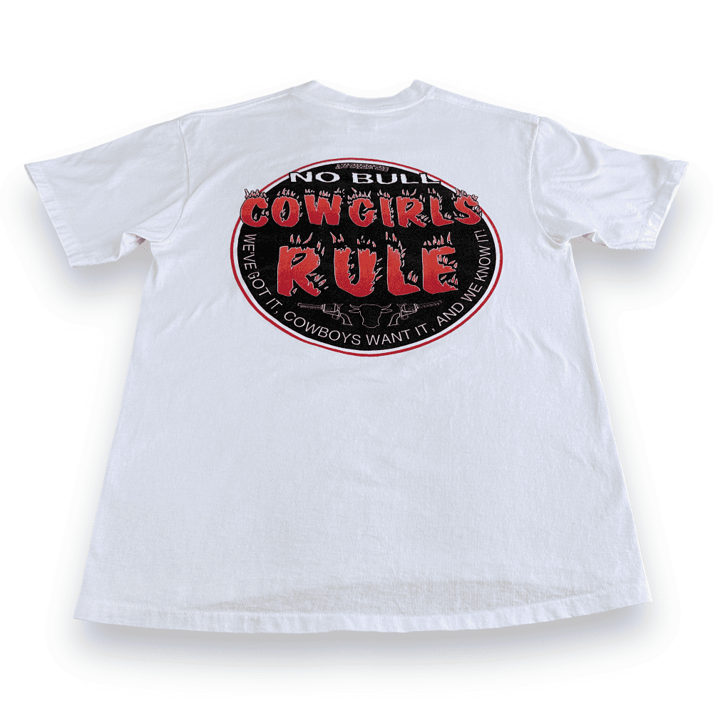 โข Back reads โNo Bull – Cowgirls Rule – Weโve Got It, Cowboys Want It, And We Know It!”.
