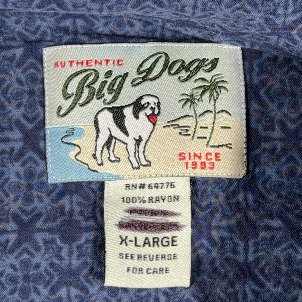 Vintage Big Dogs Hawaiian Shirt Adult EXTRA LARGE Blue Rayon Woody Classic Y2K