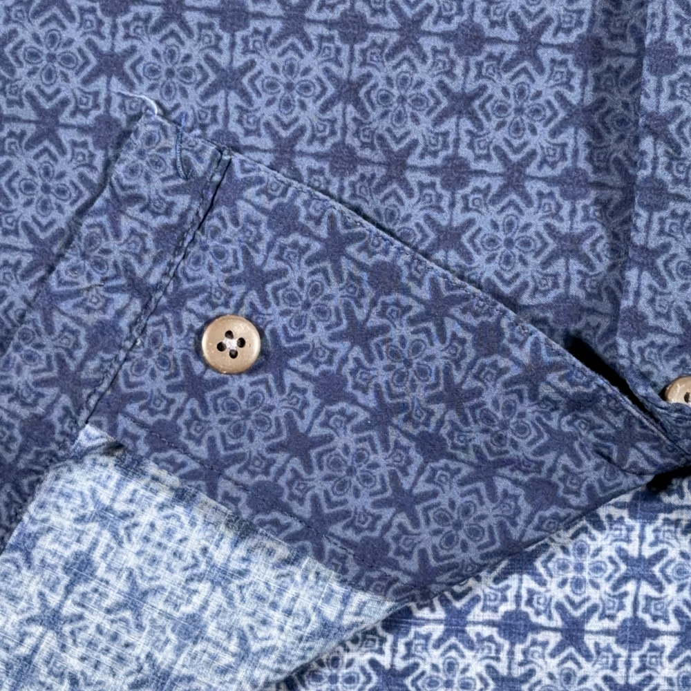 โข Y2K vintage blue rayon geometric pattern shirt