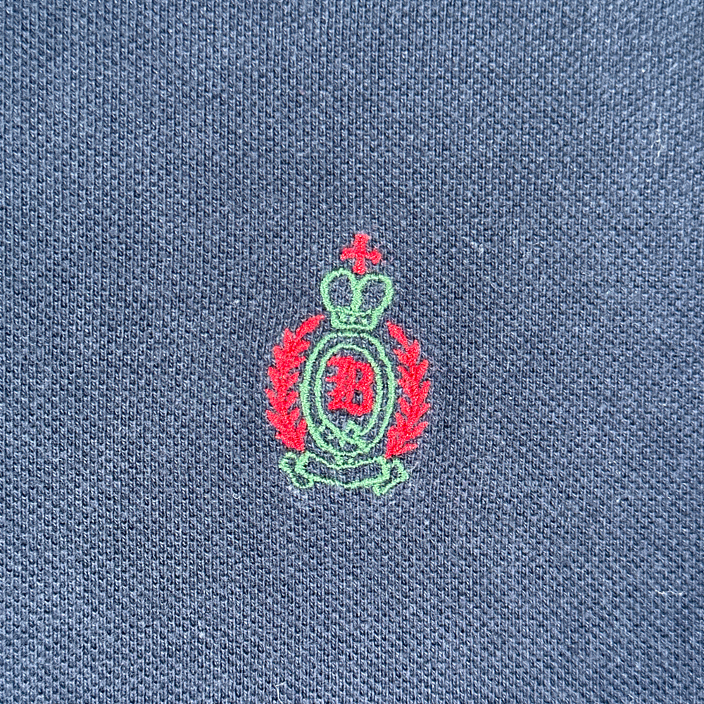 โข Embroidered crest chest logo.