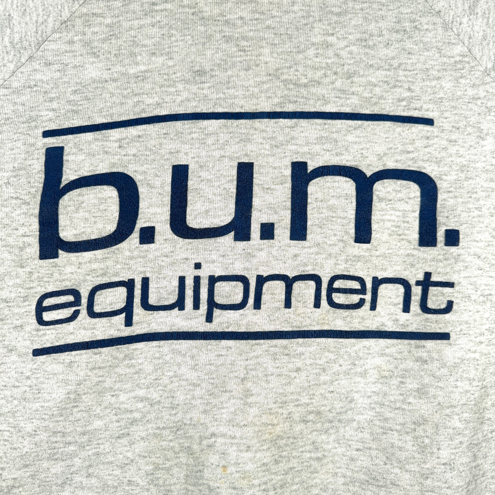 Vintage BUM Equipment Sweater Adult MEDIUM Gray Sweatshirt Raglan Logo USA 90s