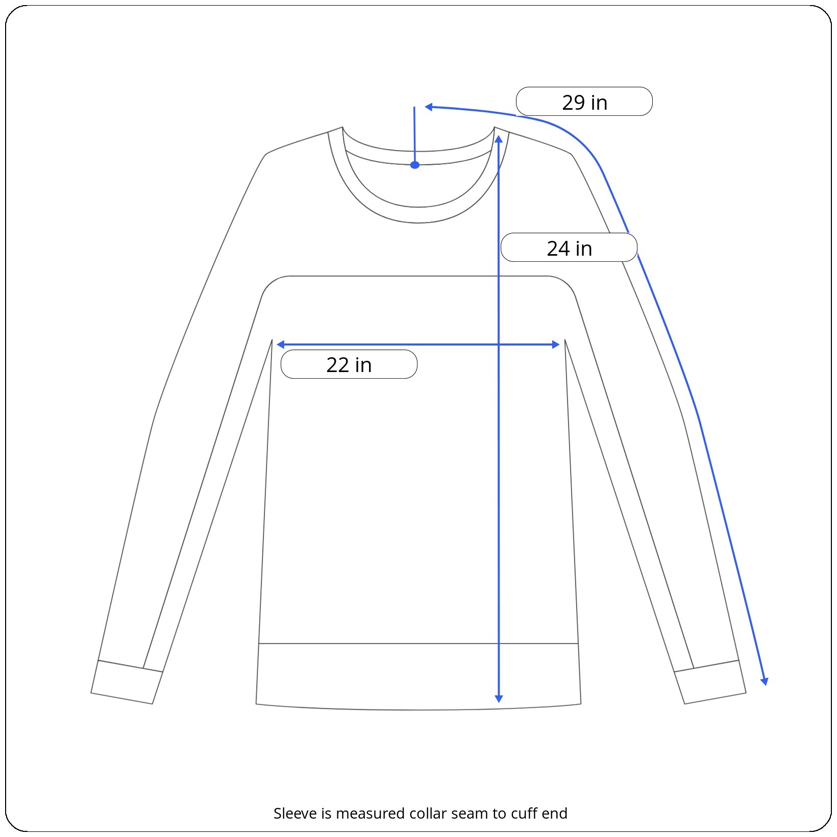 Chest: 22 inches (sleeve seam to sleeve seam)