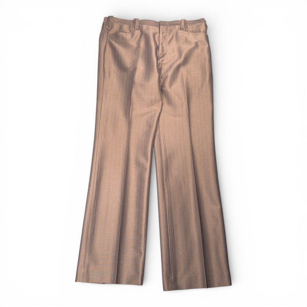Vintage Circle S Pants Mens 36×33 Brown Gold Polyester Talon USA Made 70s