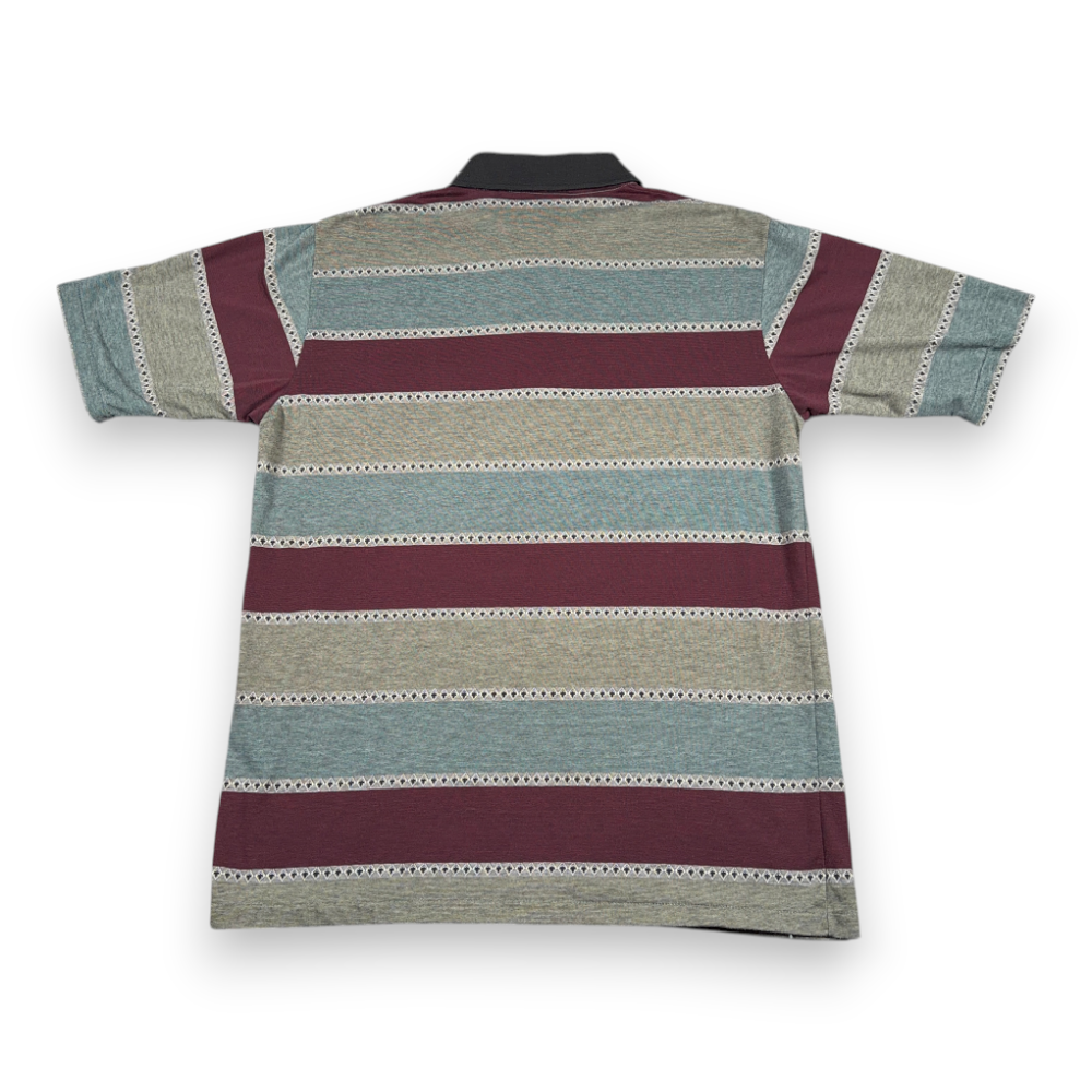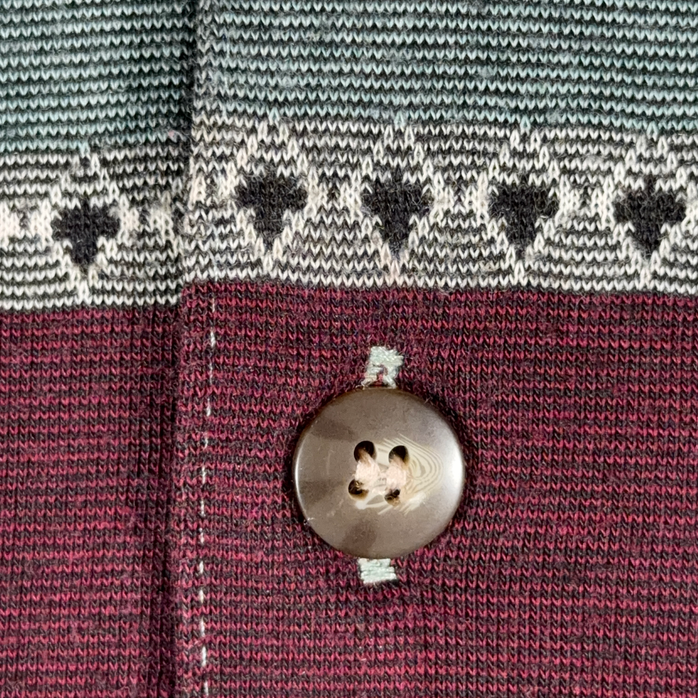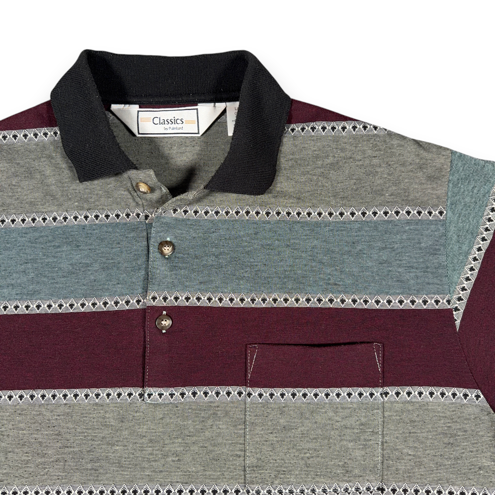 – Vintage 90s gray, blue, and burgundy polyester cotton blend polo shirt