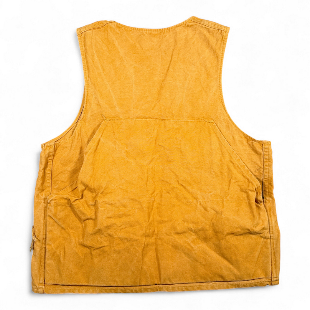 • 60s vintage vest – brown duck canvas shell; flannel yoke lining