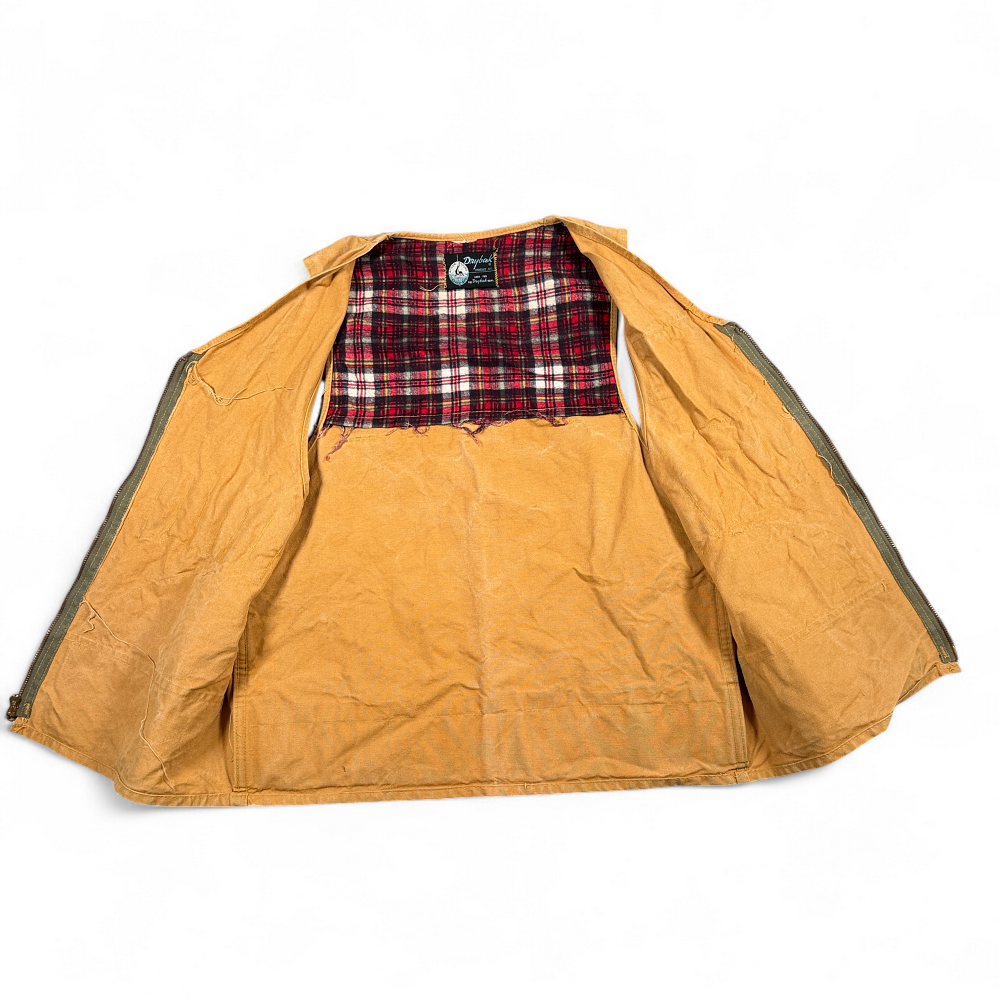 Vintage Drybak Hunting Vest Adult SMALL Brown Duck Canvas Plaid Lined USA 60s