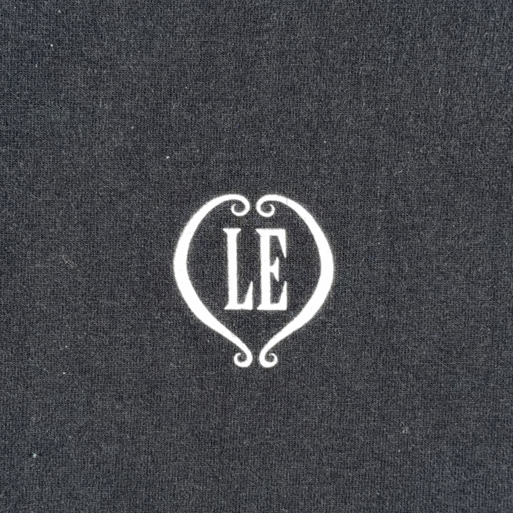 โ€ข Chest graphic features LE initials inside a heart border