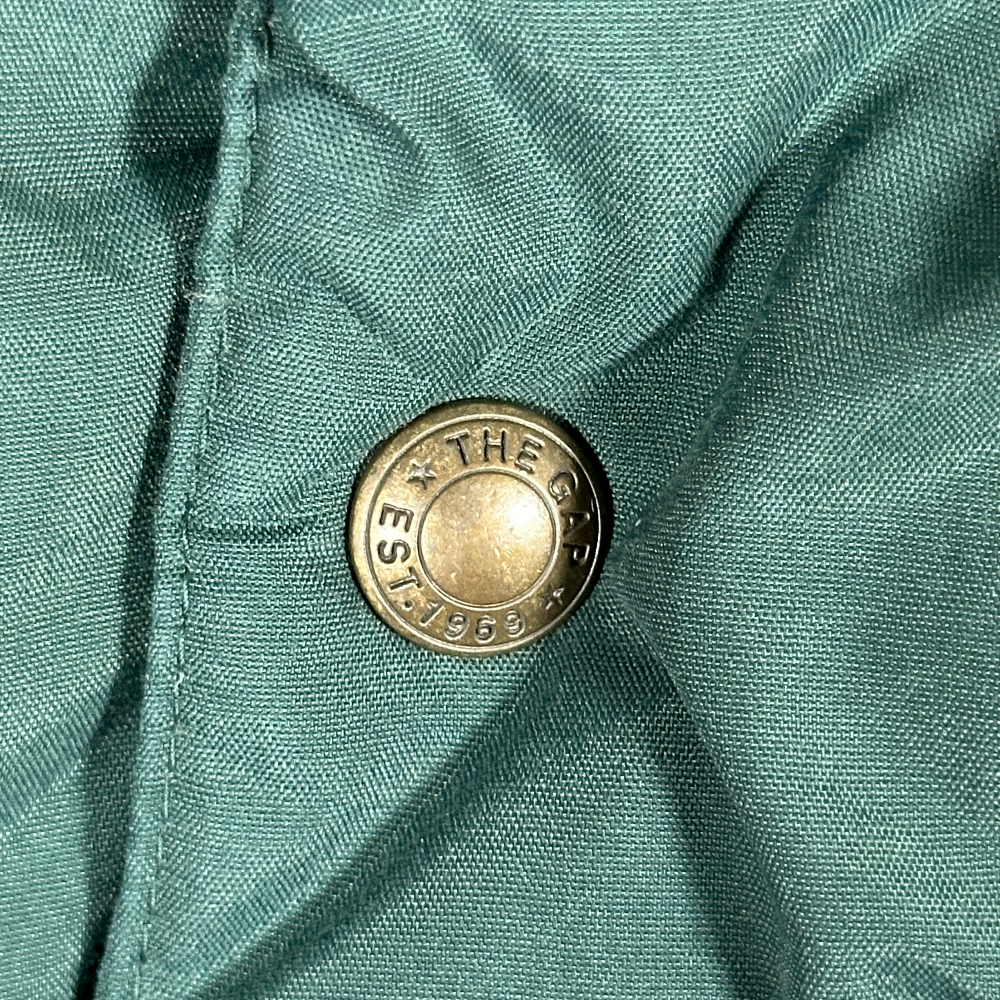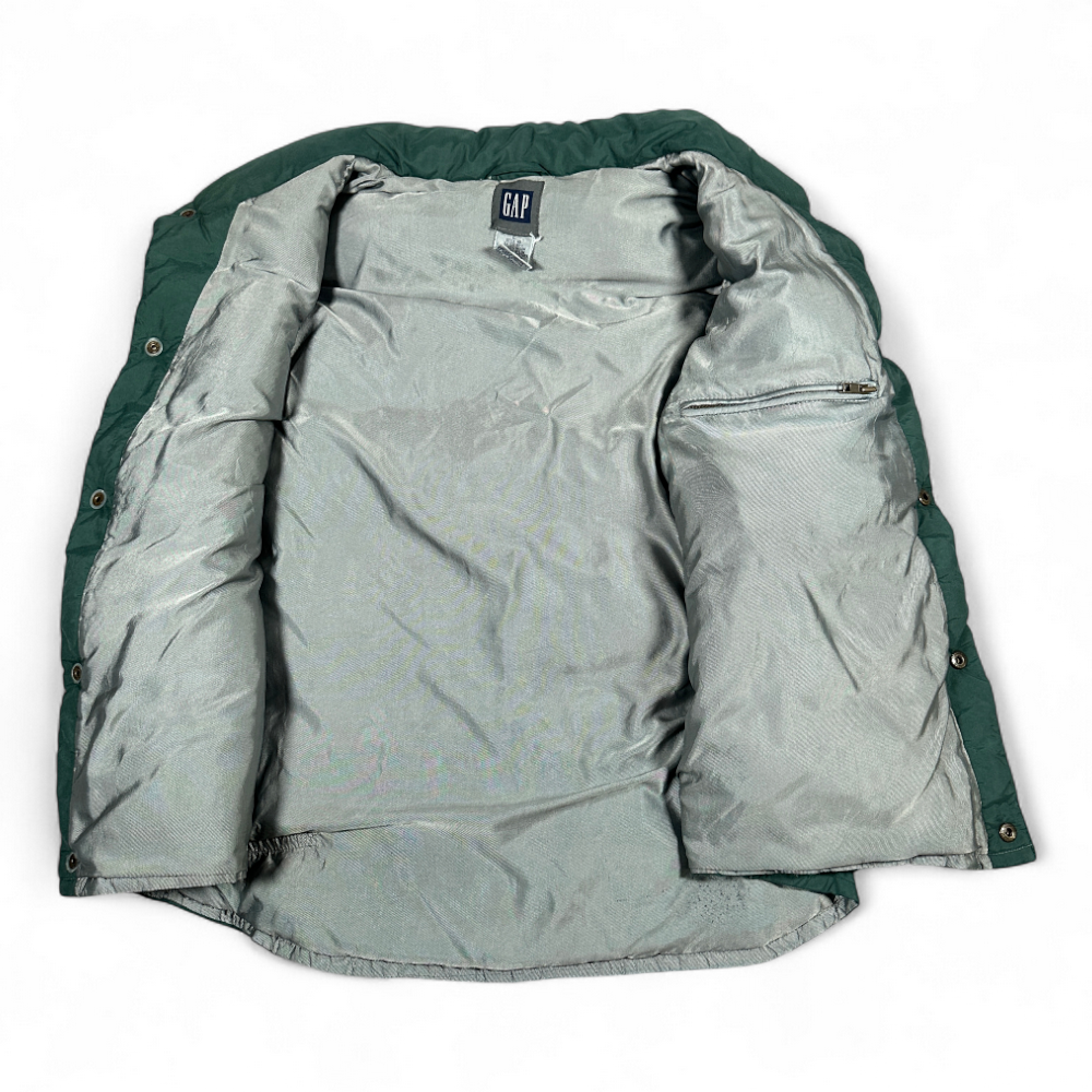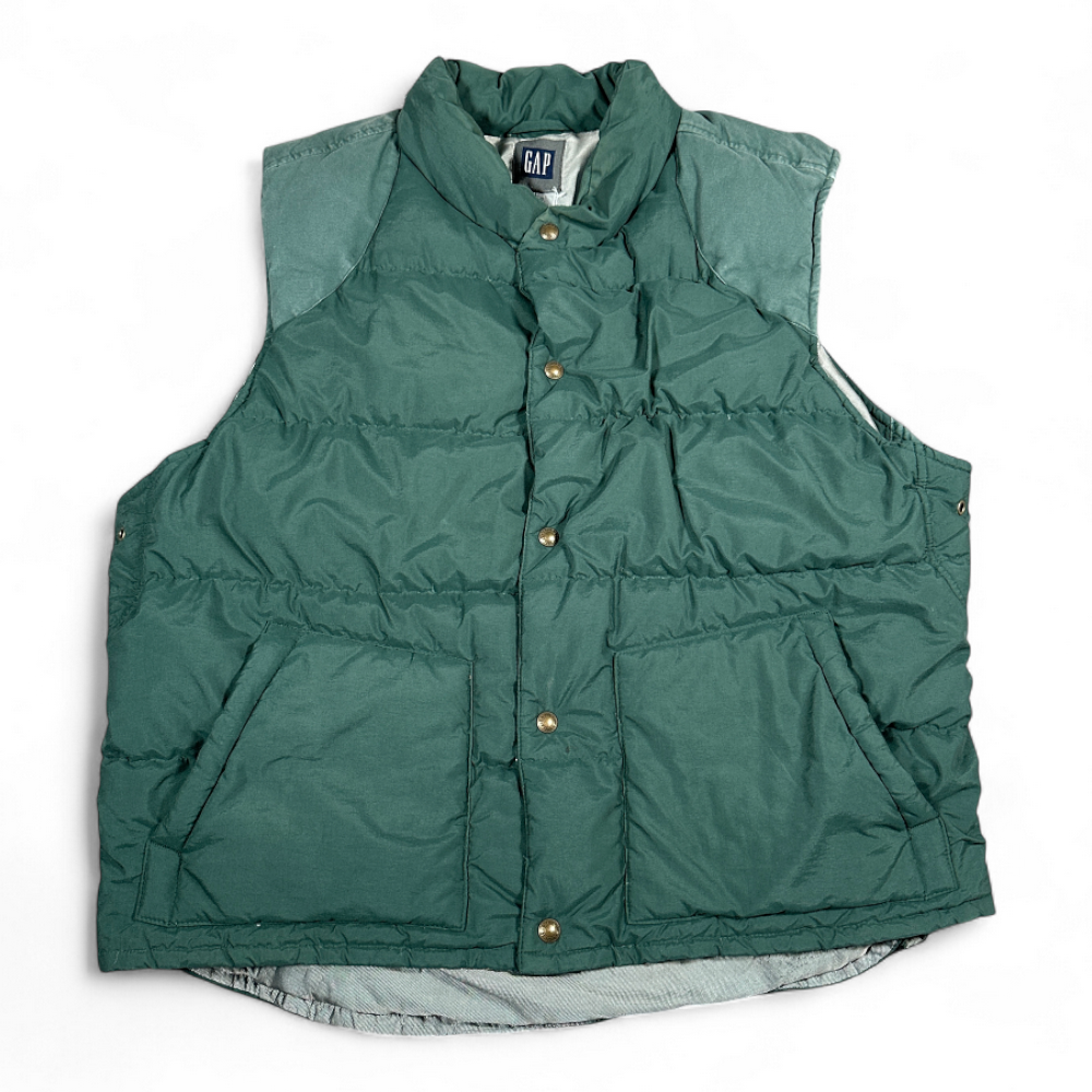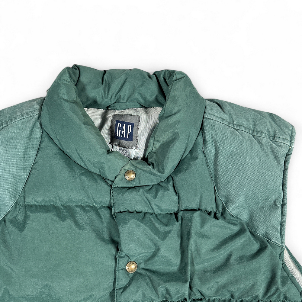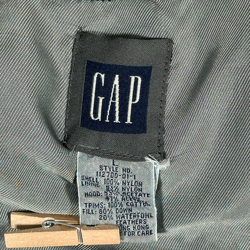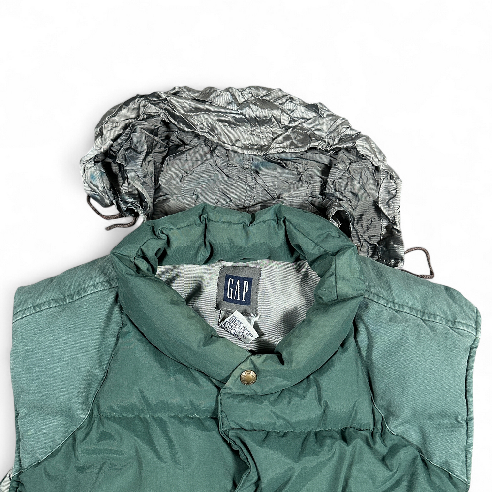 Vintage Gap Vest Adult LARGE Green Gray Down Puffer Quilted Hooded Outdoor 90s