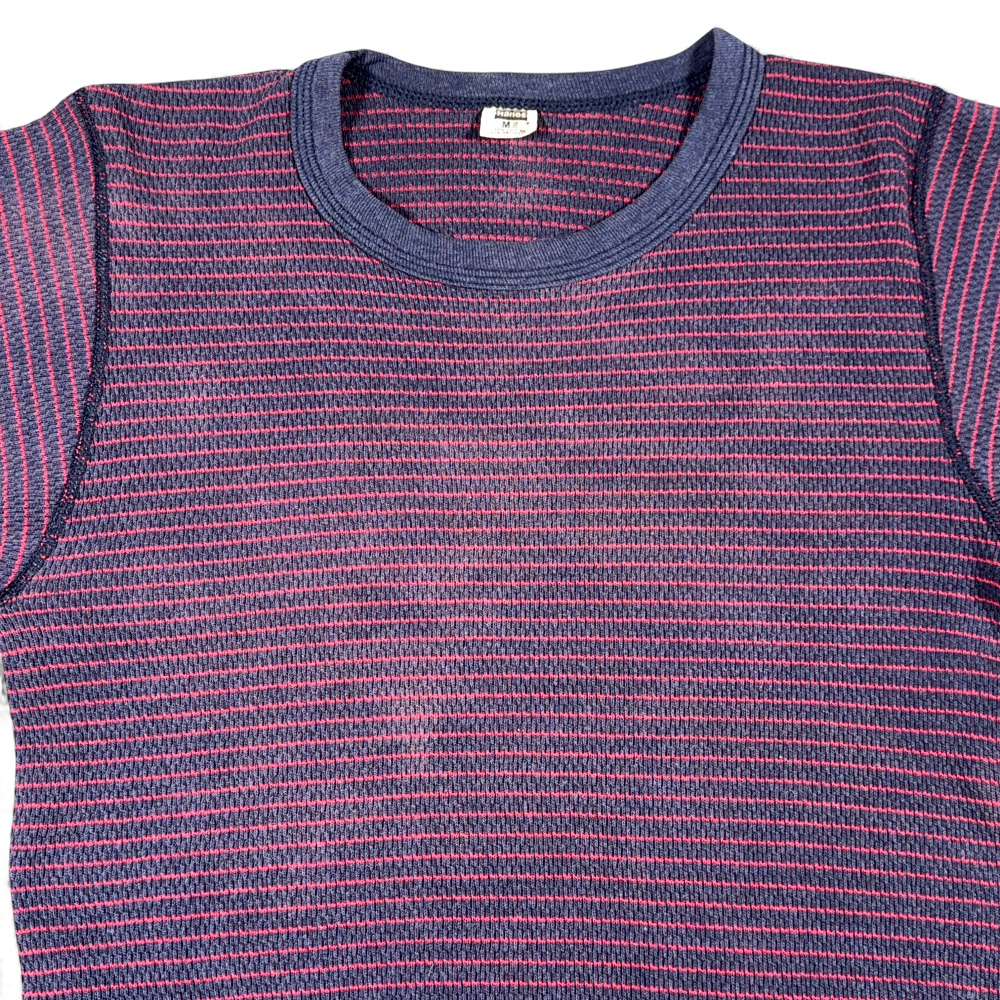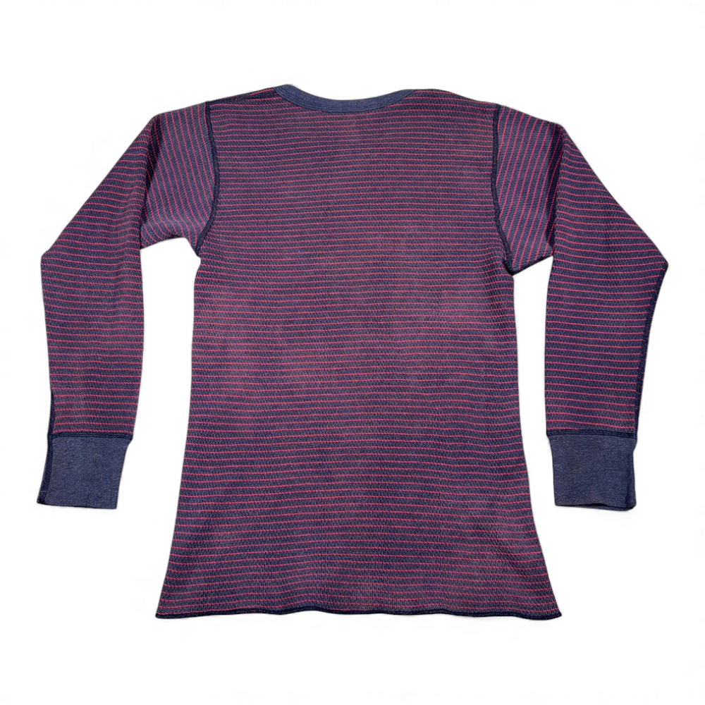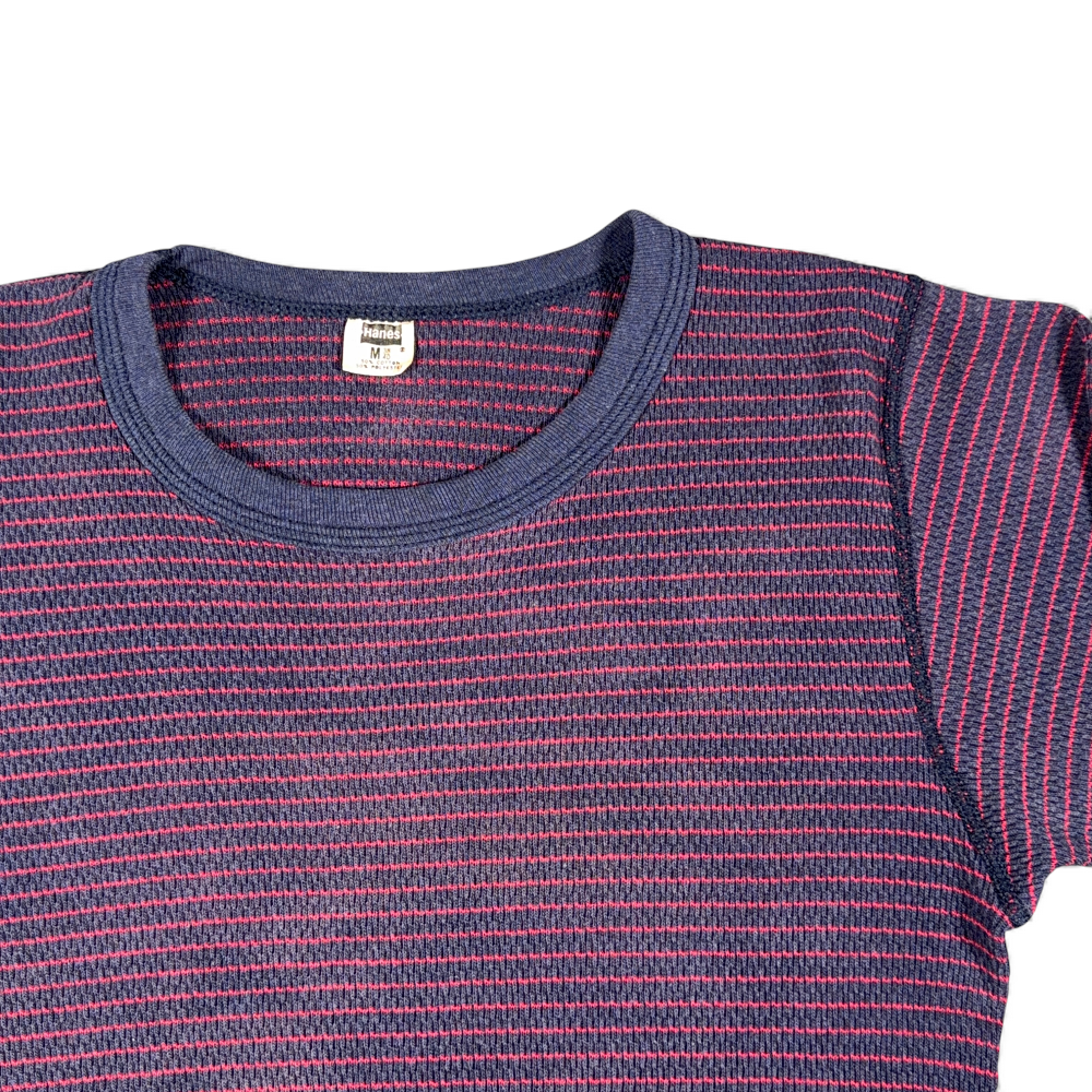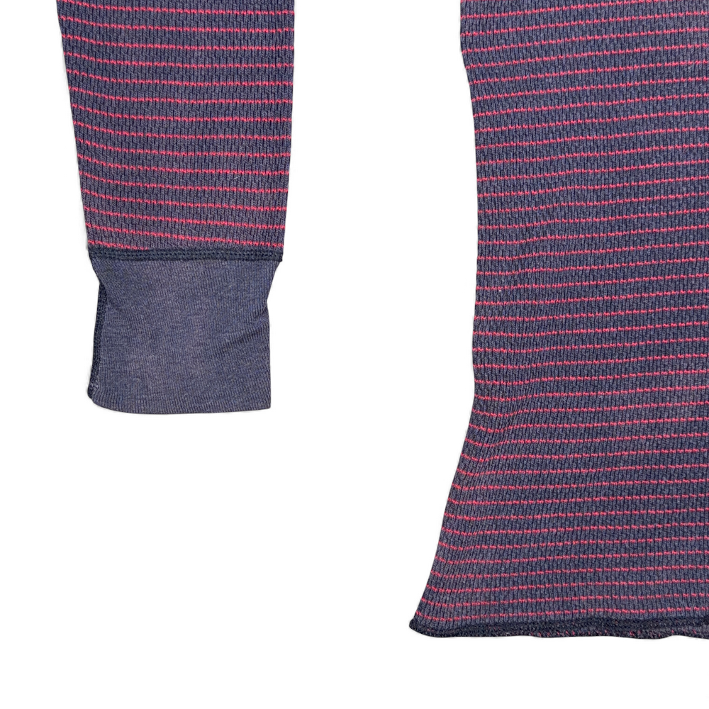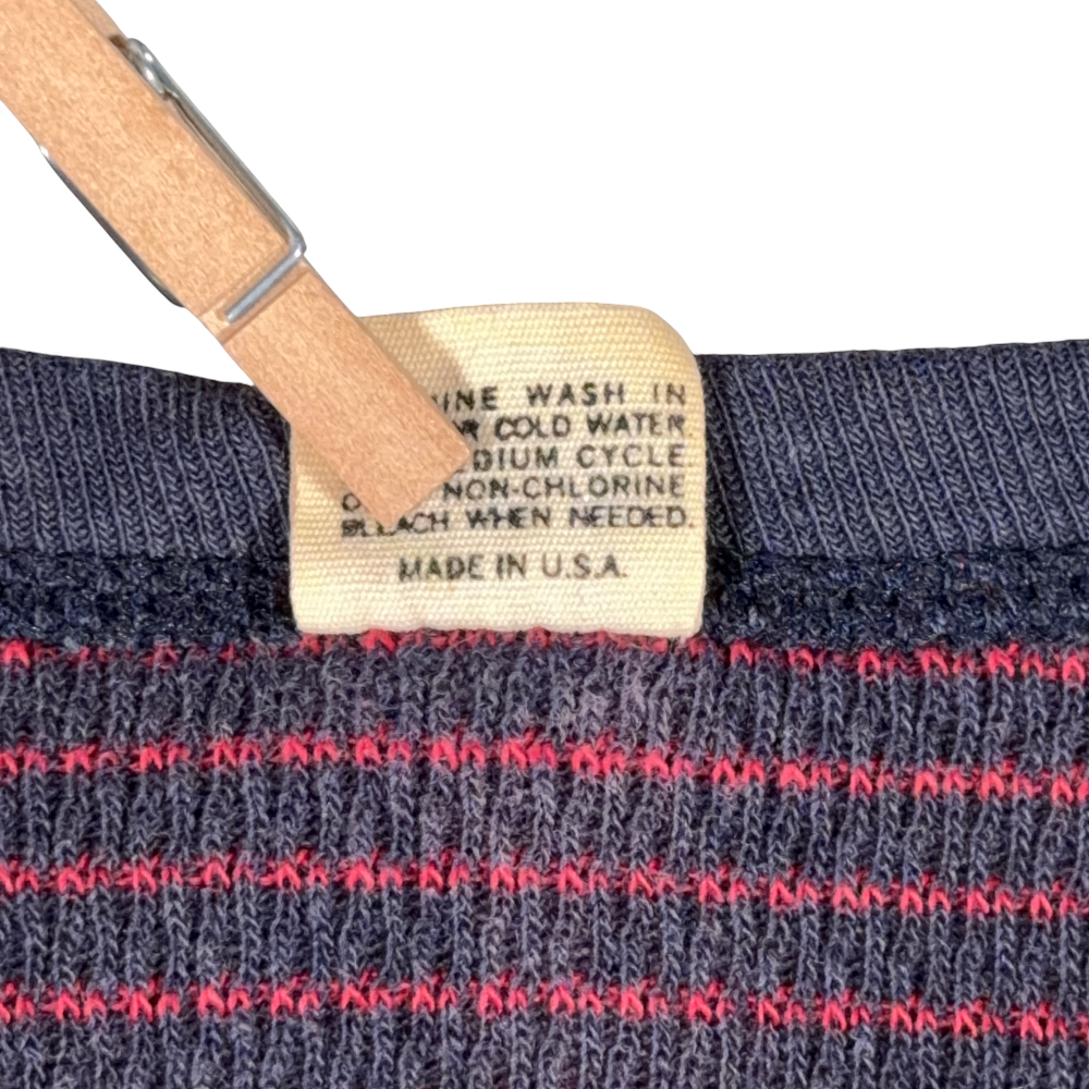Vintage Hanes Shirt Adult SMALL Blue Red Striped Thermal Waffle Knit USA 70s