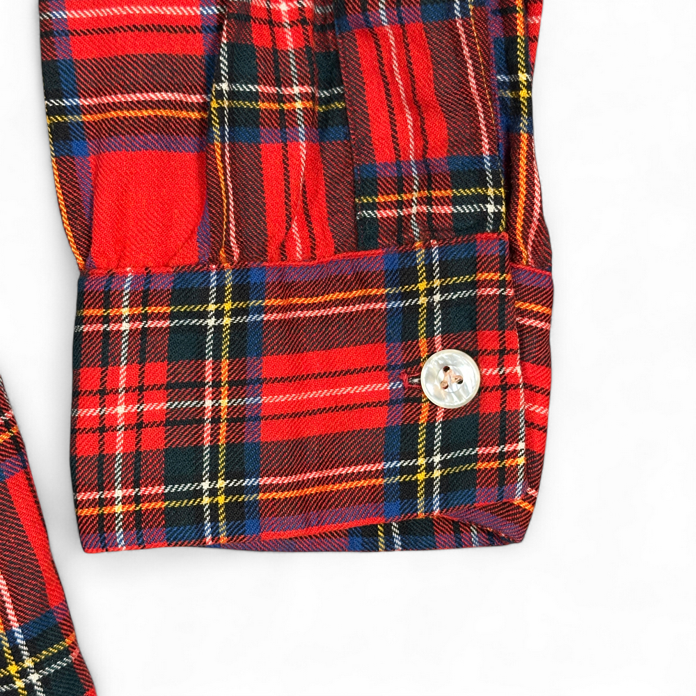 Vintage Hathaway Shirt Adult LARGE Red Royal Stewart Plaid Loop Collar Wool 60s