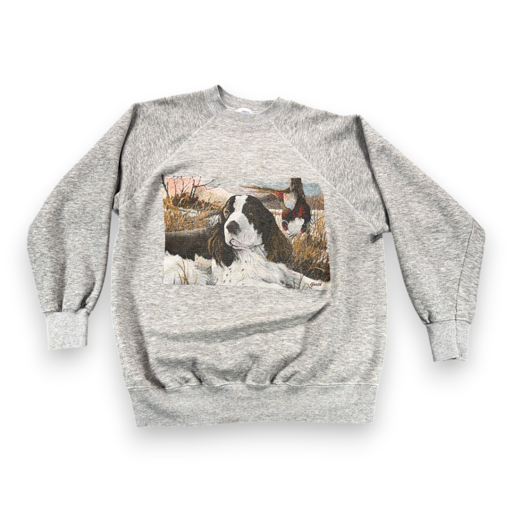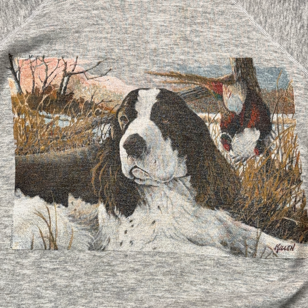 Vintage Hunting Dog Sweater Adult EXTRA LARGE Gray Sweatshirt Spaniel USA 80s