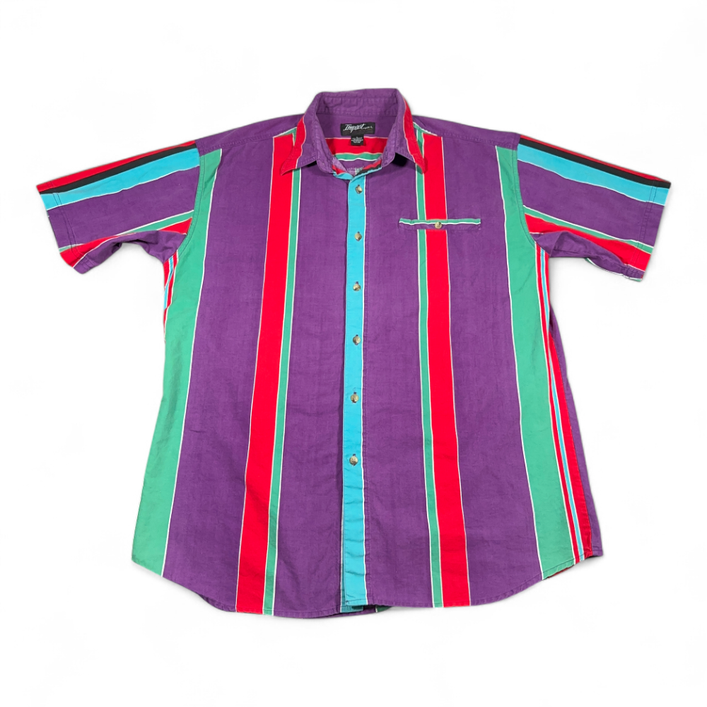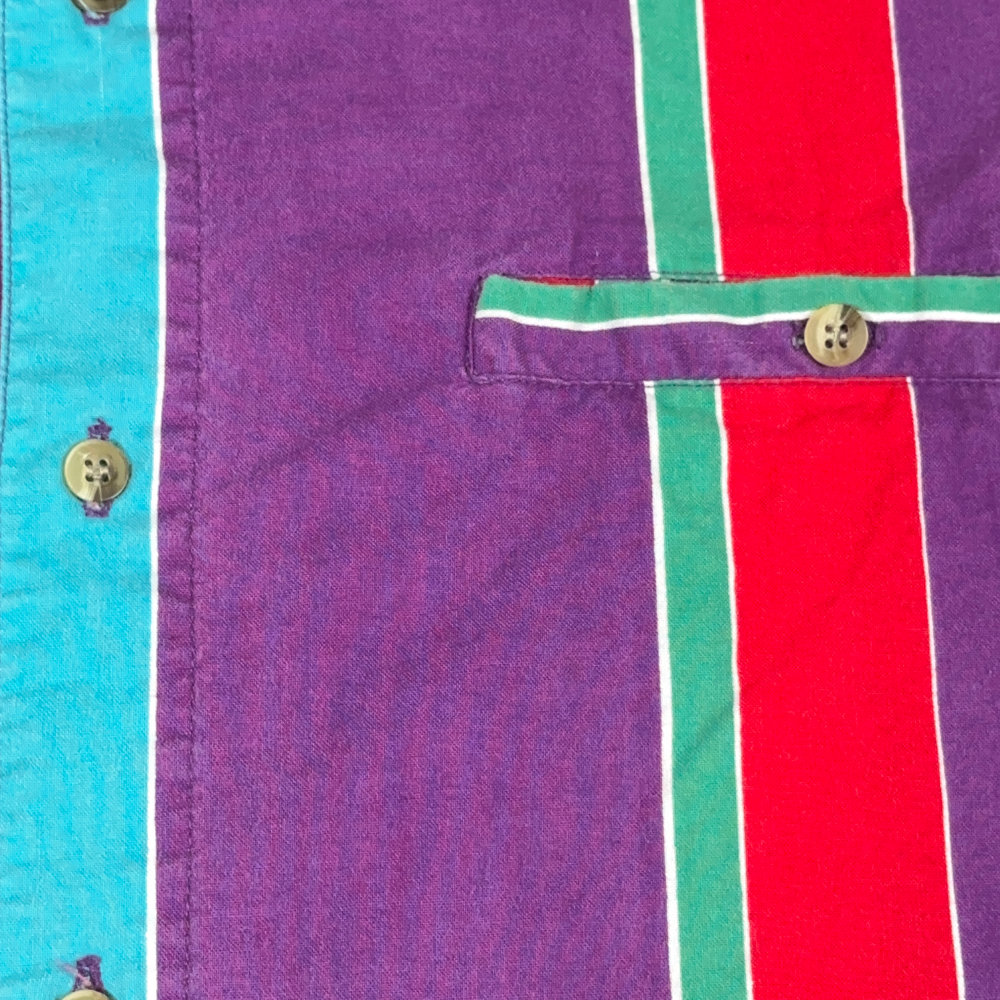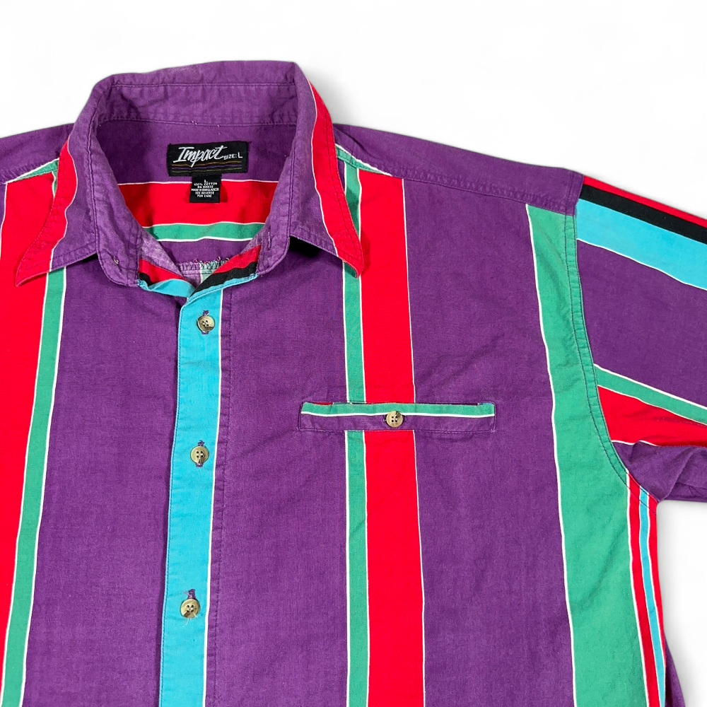Vintage Impact Shirt Adult LARGE Purple Striped Red Rainbow Colorful Preppy 90s