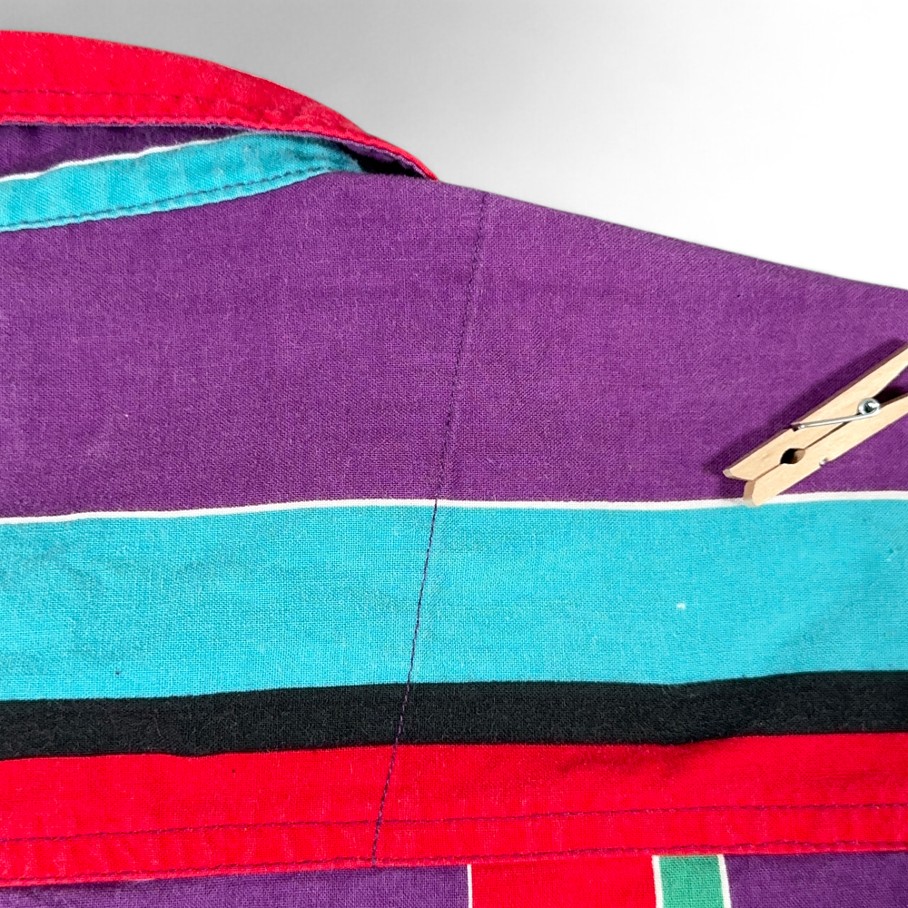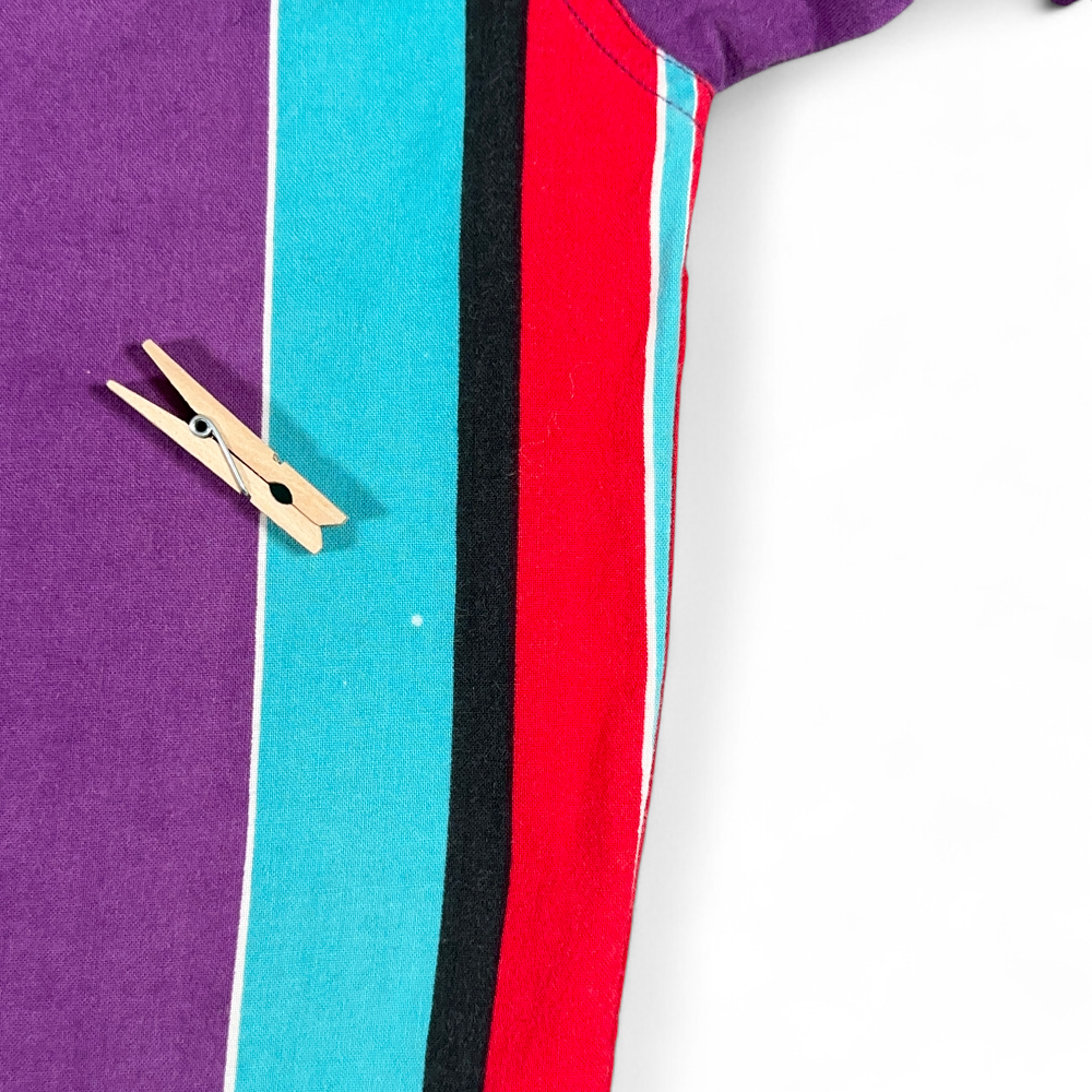 โ€ข Purple with a multicolor striped pattern – 100% cotton