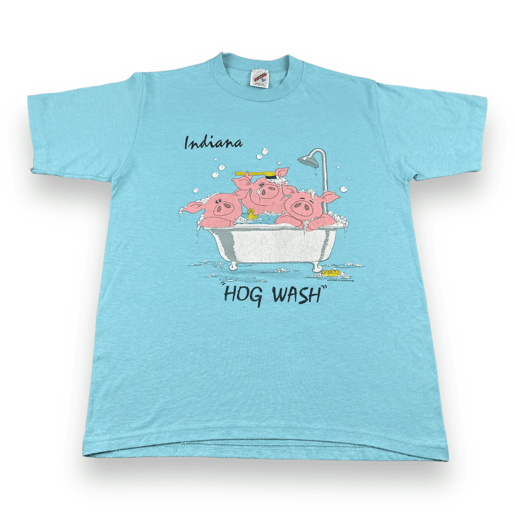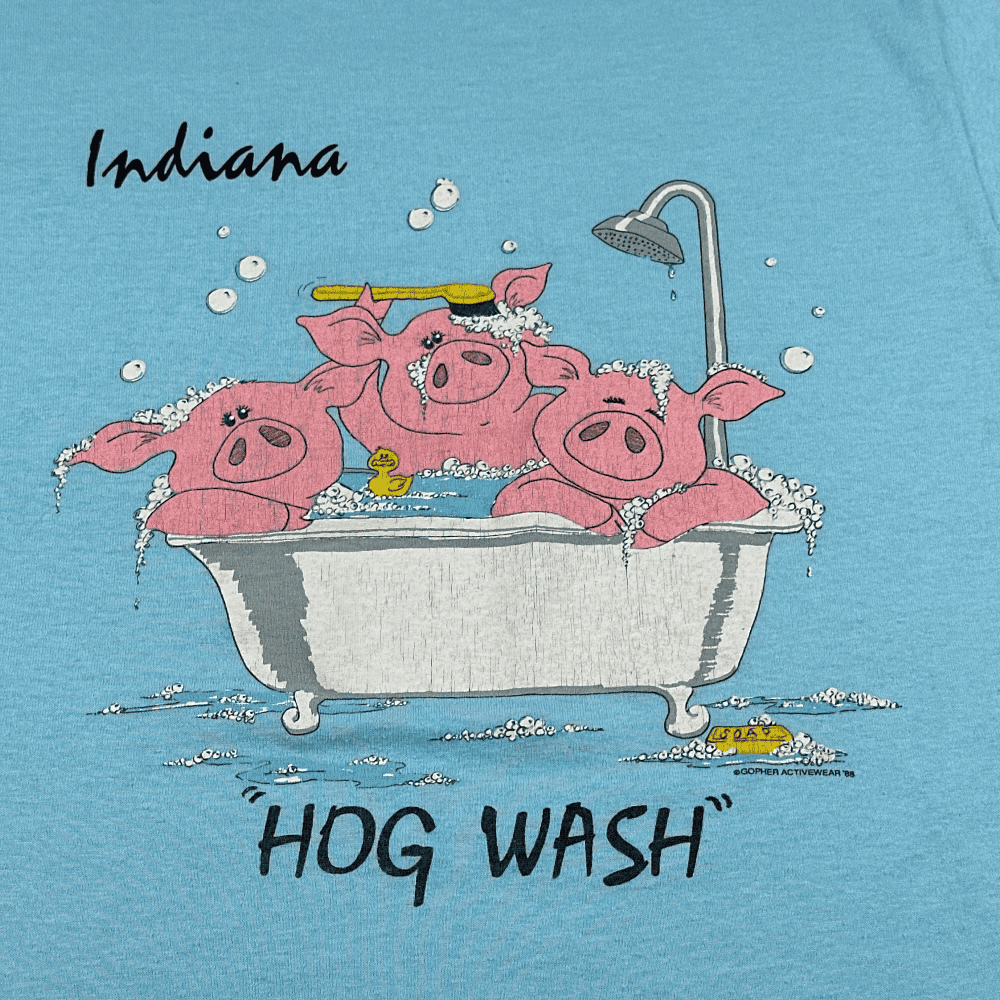 Vintage Indiana Hogwash Shirt Blue Bathtub Pigs 80s Adult SMALL