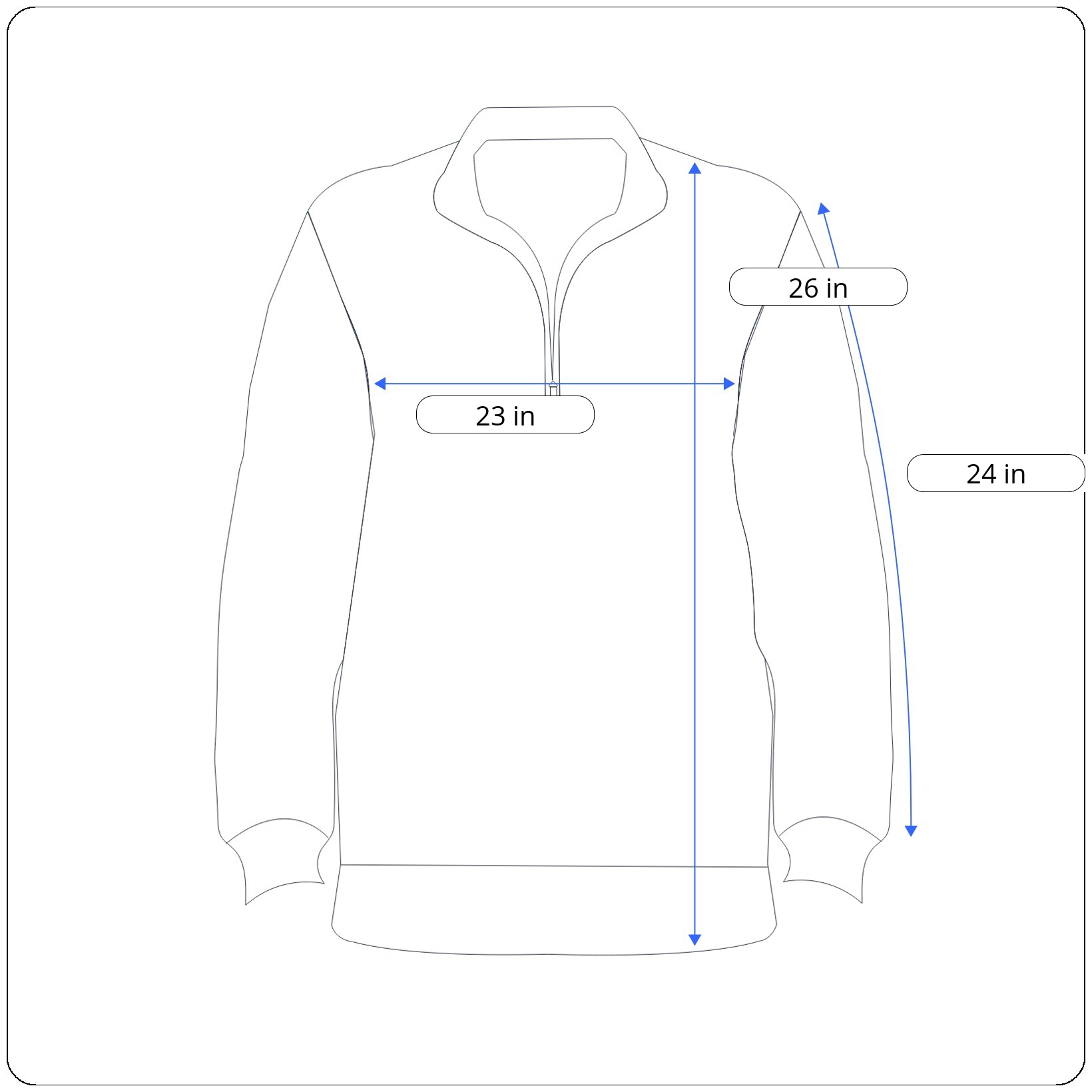 Sleeves: 24 inches (shoulder seam to cuff end)