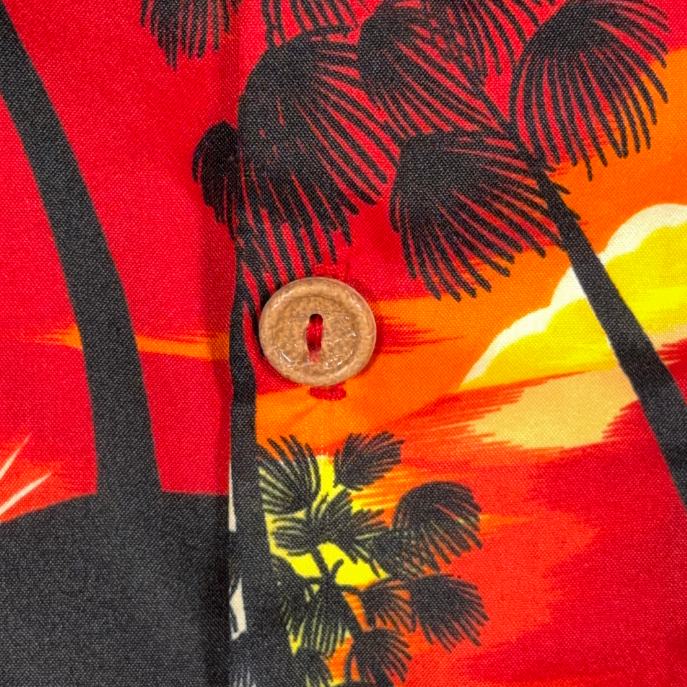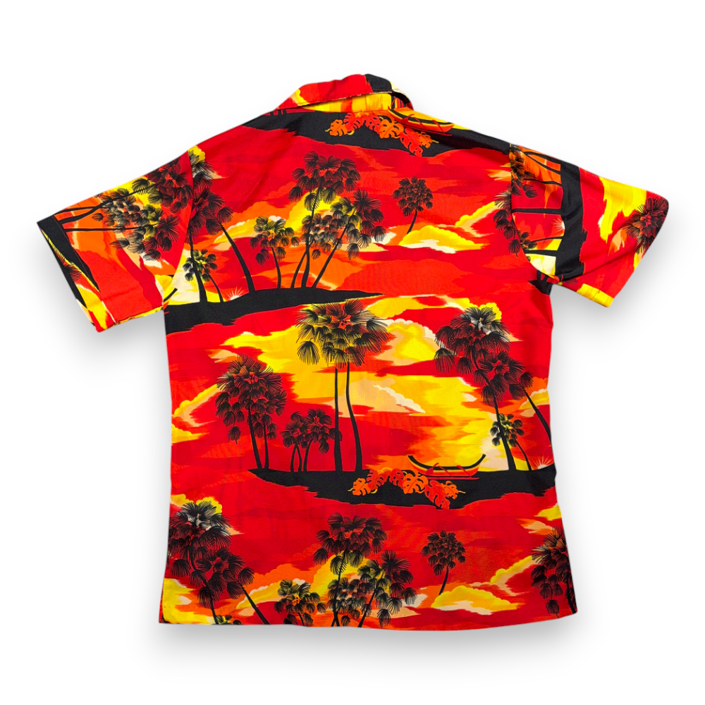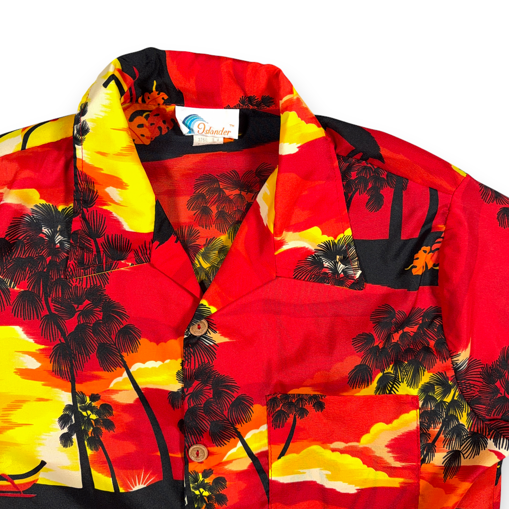Vintage Islander Hawaiian Shirt Adult MEDIUM Red Yellow Orange Sunset USA 70s