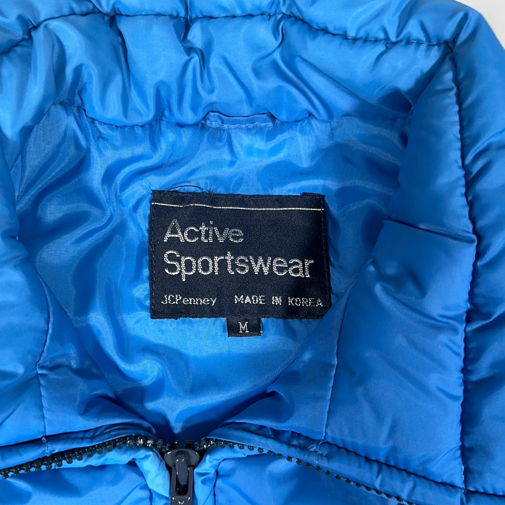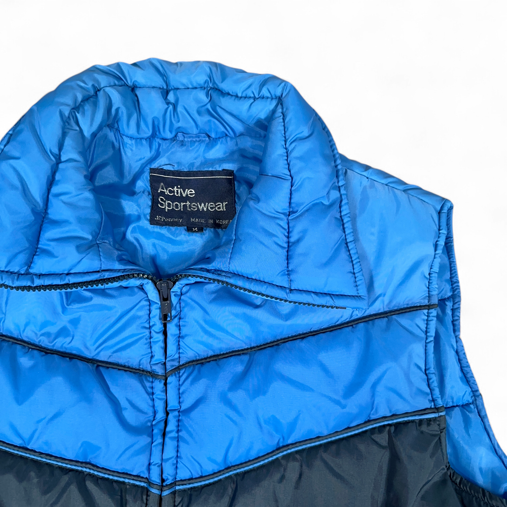 Vintage JC Penney Puffer Vest Adult MEDIUM Blue Retro Ski Colorblock Active 80s
