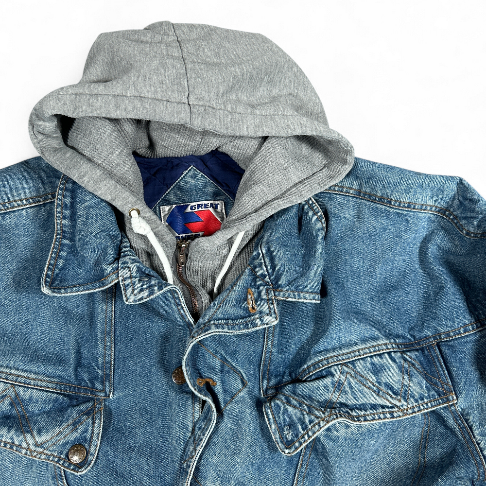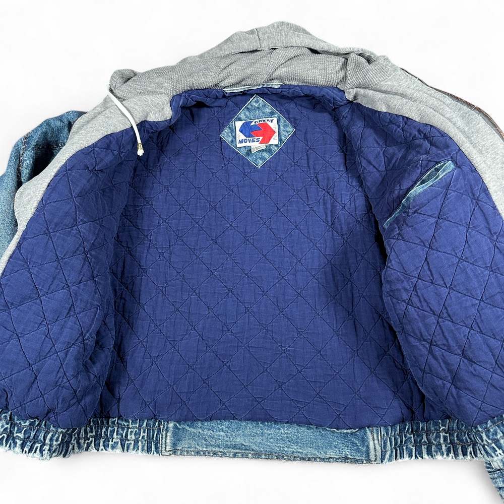 Vintage Jean Jacket Adult LARGE Blue Denim Quilted Hooded Blanket Lined 90s